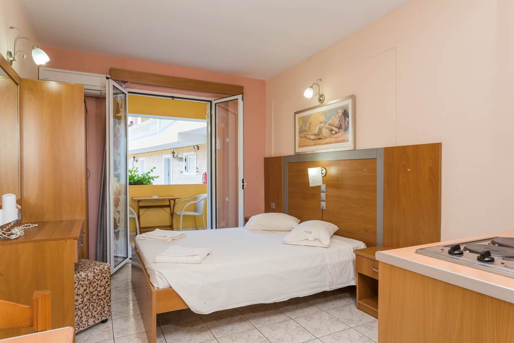 Set in the charming resort of Kalamaki, the family-run Macedonia Hotel enjoys a relaxed atmosphere with comfortable accommodation. This hotel is ideal for families and couples looking for a laid-back option in a scenic position, close to the heart of the resort.Studios sleep up to 3 adults and have a bathroom with shower, hairdryer, air conditioning*, kitchenette with cooking rings, fridge and kettle, and a balcony or terrace. One Bedroom apartments sleeping up to 4 adults are also available.