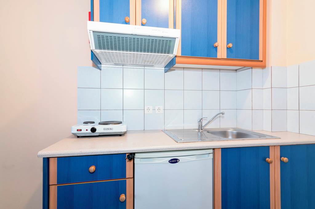 Studios sleep up to 3 adults and have bathroom containing a shower, air conditioning* (May-Sep), flat screen television, fridge, kettle, cooking ring and balcony or terrace. One Bedroom apartments sleeping up to 4 adults are also available.