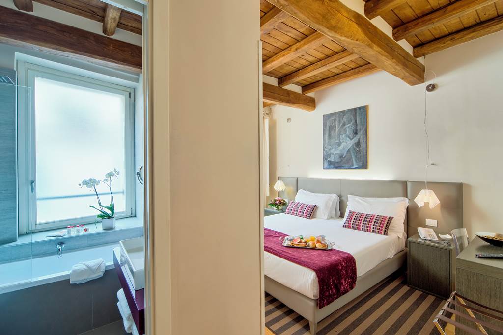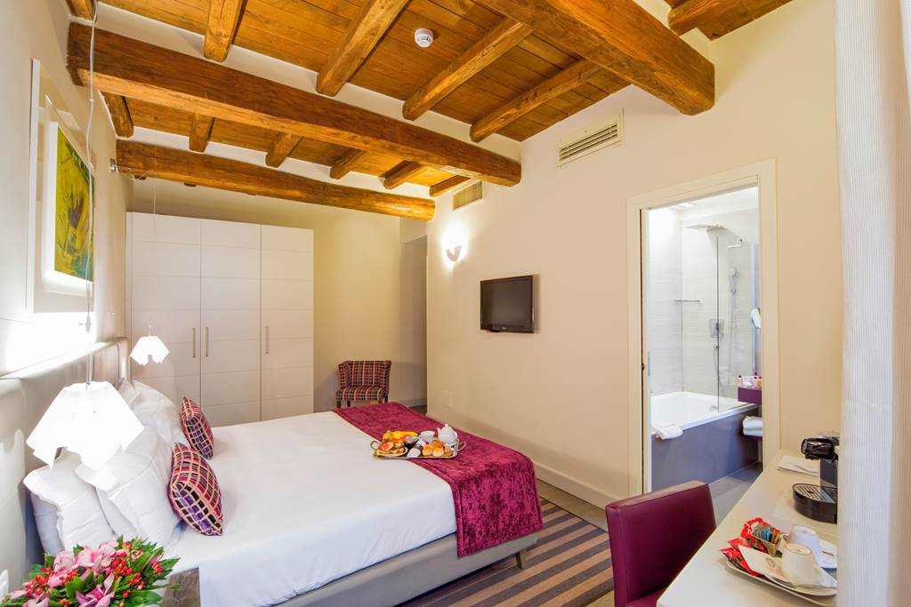 You could not be more central when staying at the Trevi Palace Luxury Inn. Set in a modernised 16th-century building, it is an ideal base for exploring the city. The rooms are minimalist in style, with bright white décor, touches of colour, and tea and coffee-making facilities. There is a small breakfast room in the basement, and with the vibrant historic centre right outside your door, you will find plenty of local restaurants for dinner.Classic Double and Twin rooms sleep up to 2 adults and have bathroom containing a shower, air conditioning, slippers, hairdryer, flat screen television, tea and coffee making facilities and safety deposit box. Room upgrade options and Sole Use rooms are also available.