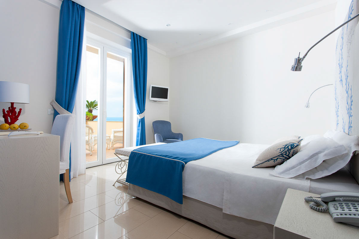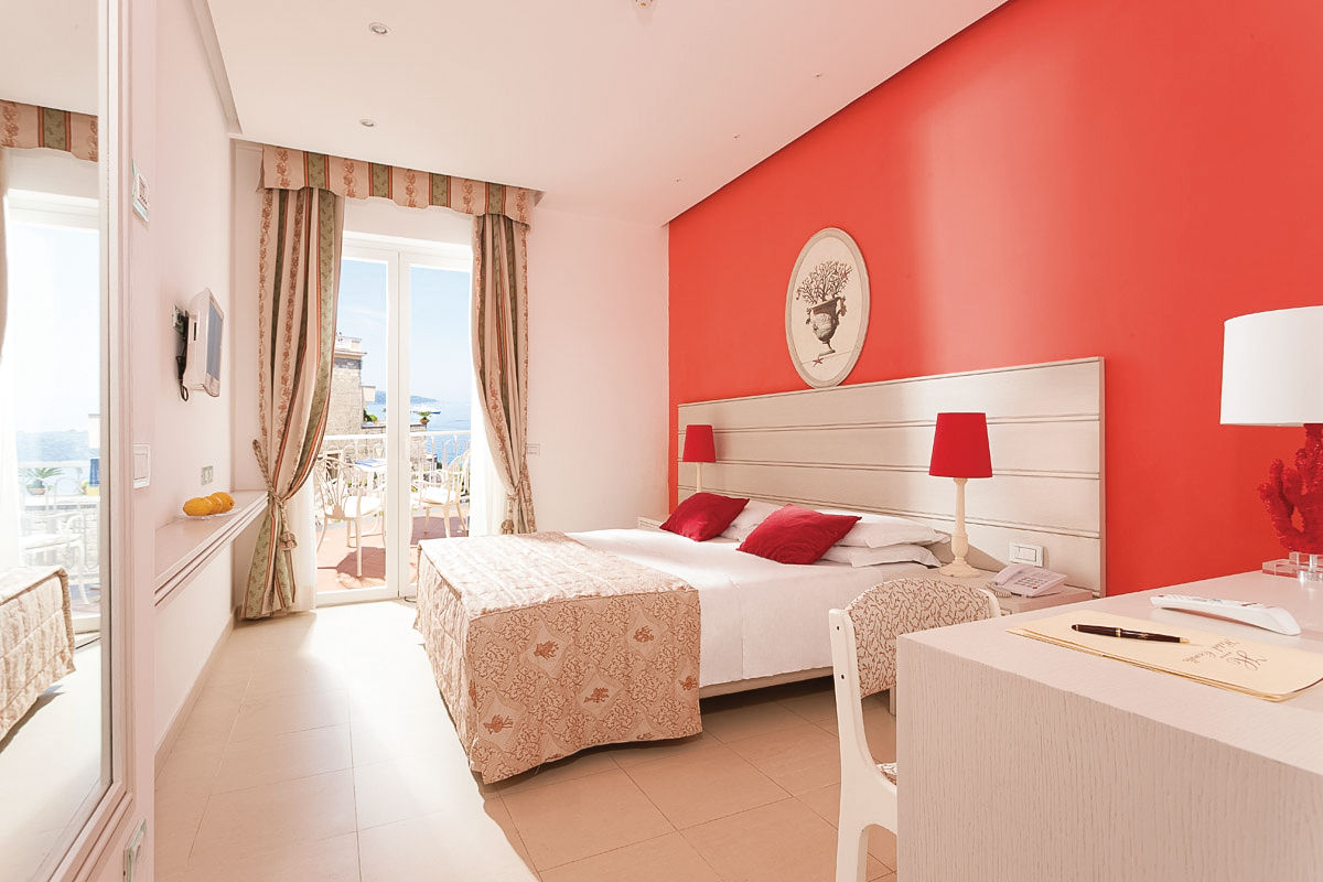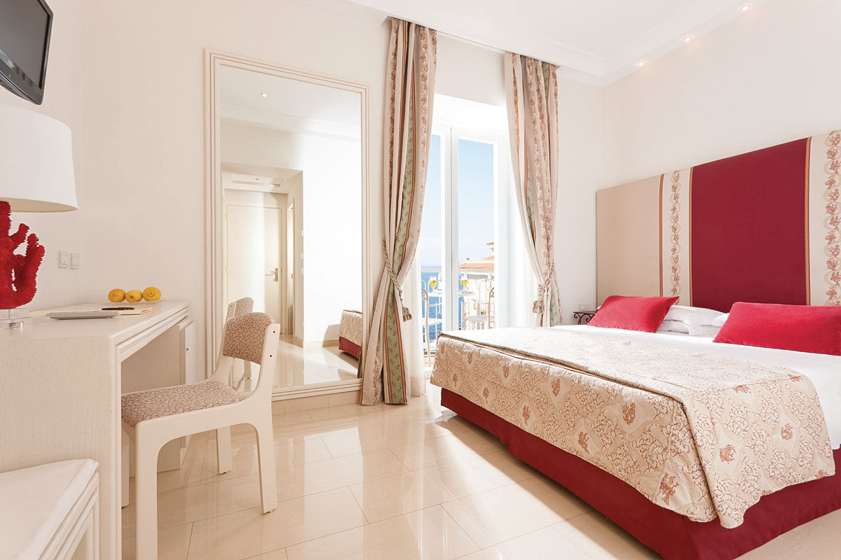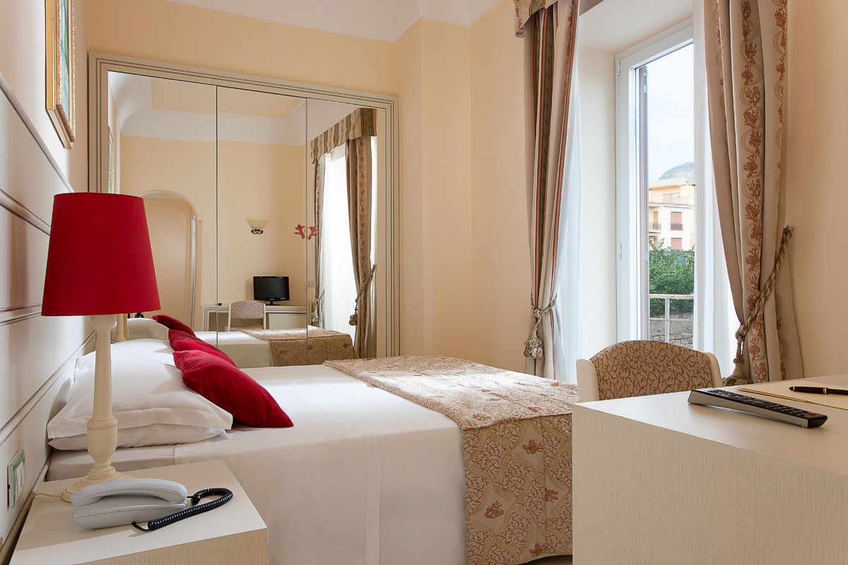 With a stunning clifftop position, this historic hotel has elegantly blended past and present d?cor throughout to create the perfect setting for your Sorrento holiday. Once known as the ?Albergo Cappuccini? meeting point for intellectuals and artists, the property has accommodated many famous historic artists including Luigi Pirandello. The hotel?s pool sits peacefully on a sun-kissed solarium along with breathtaking Gulf of Naples views and an ? la carte restaurant. When you want to explore the local area, hop on the hotel?s complimentary shuttle service to Sorrento resort centre.Standard rooms sleep 2 adults and have bathroom containing a shower, air conditioning, hairdryer, flat screen television, mini-bar, safety deposit box and view of the interior. Classic Double or Twin rooms with partial sea views and Superior Double or Twin rooms with Balcony have two chairs, a small table and sea views are also available.