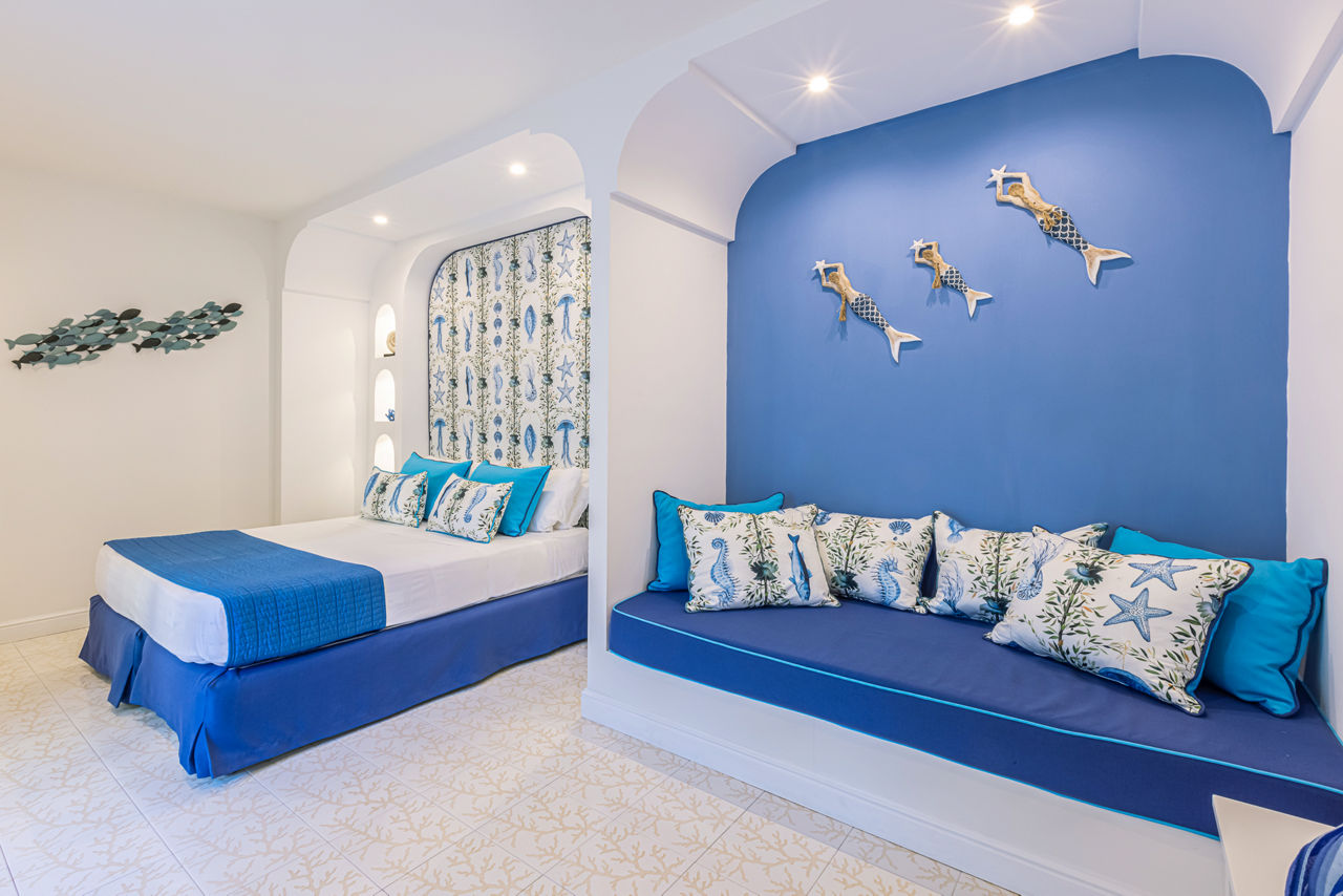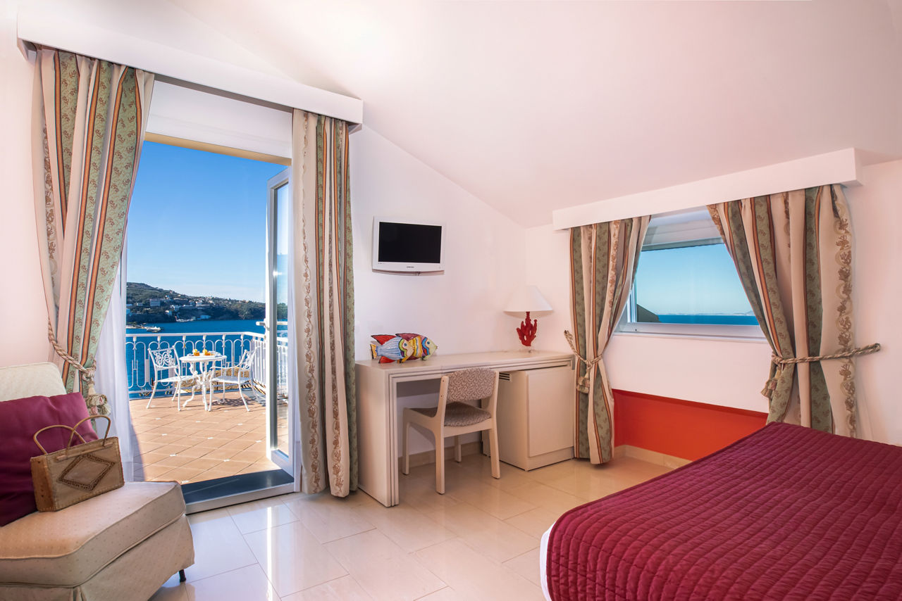 Standard rooms sleep 2 adults and have bathroom containing a shower, air conditioning, hairdryer, flat screen television, mini-bar, safety deposit box and view of the interior. Classic Double or Twin rooms with partial sea views and Superior Double or Twin rooms with Balcony have two chairs, a small table and sea views are also available.