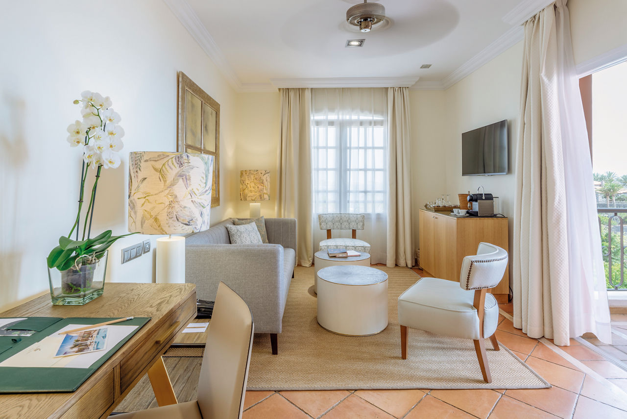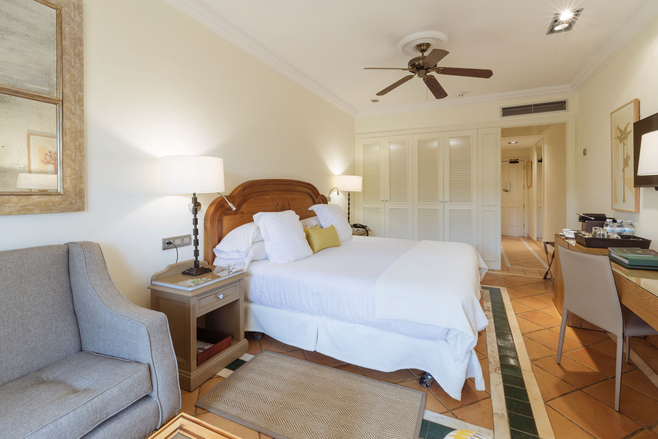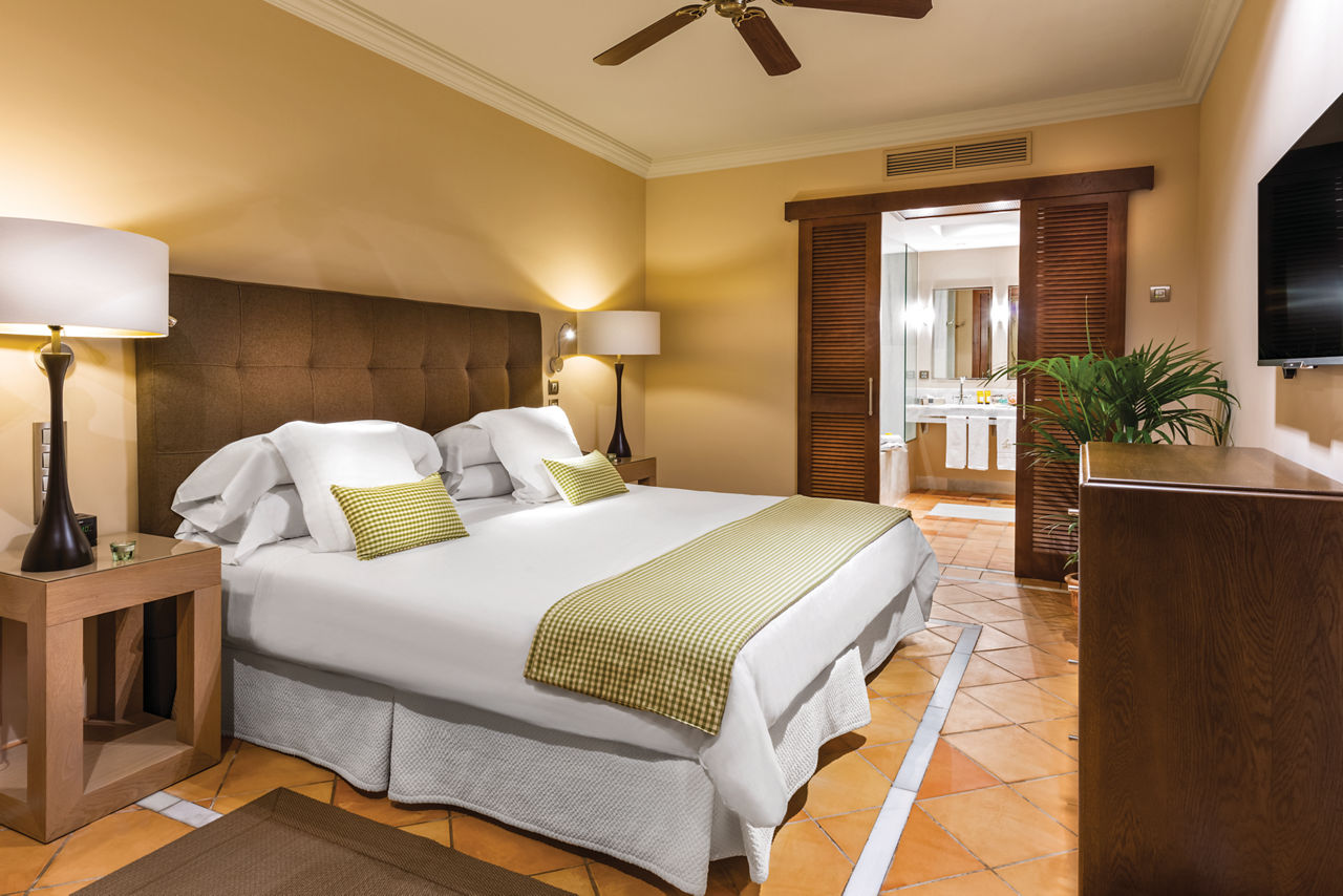Double rooms sleep up to 2 adults and 1 child and have 1 king size bed or 2 twin beds with satellite TV, tea and coffee making facilities, free Wi-Fi, full bathroom, pillow menu, balcony or terrace and a garden view. Size 25 ? 30sqm. Sea view rooms are available. Junior Suites sleep up to 2 adults and 2 children or 3 adults and 1 cot and have 2 twin beds plus 2 extra beds with the amenities of the double room plus sound system, safety deposit box*, mini bar*, 24 hour room service* and a garden view. Size 40 - 45sqm. Sea view rooms are available. Suites sleep up to 2 adults and 2 children or 3 adults and 1 cot and have 2 twin beds plus 2 extra beds with the same amenities of the junior suite with a garden view. Size 50 - 60sqm. Sea view rooms are available. Casas Ducales double rooms sleep up to 2 adults and 1 child and have 1 king size bed with free Wi-Fi, satellite TV, pillow menu, butler service, midmorning Cava, tea and coffee making facilities, national and international newspapers, mini bar*, safety deposit box*, balcony or terrace and a garden view. Size 25 - 30sqm. Sea view rooms are available.