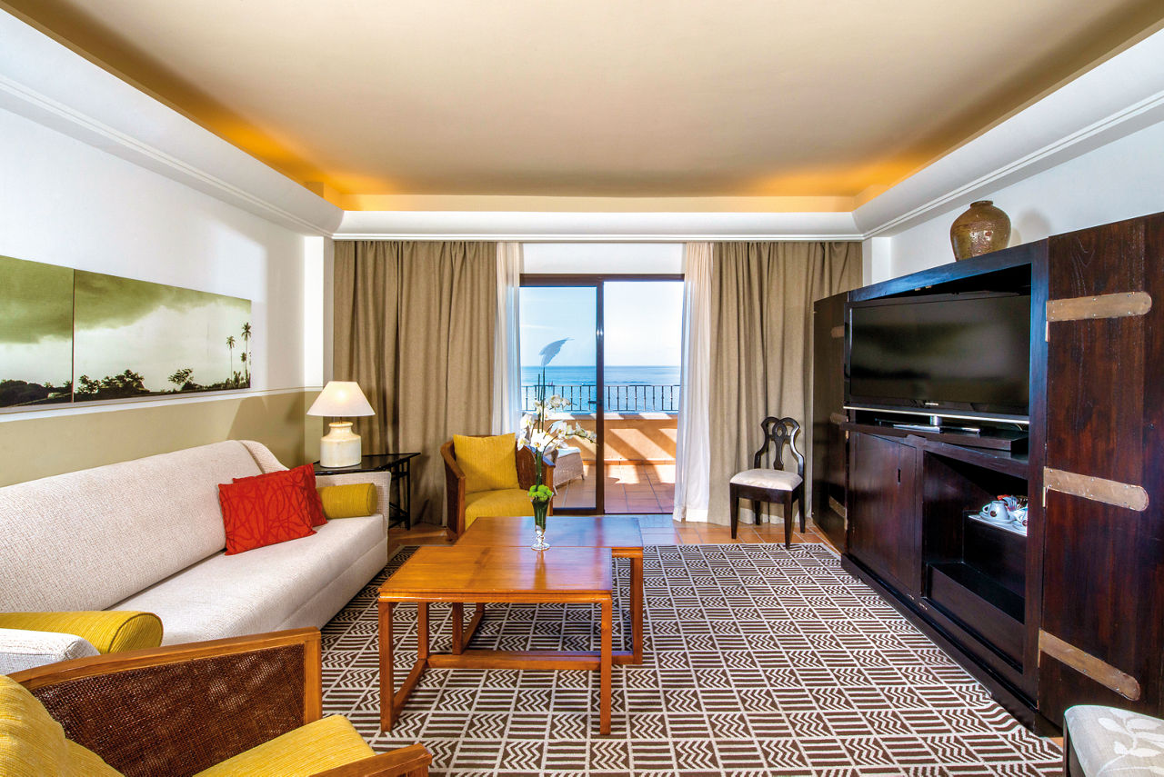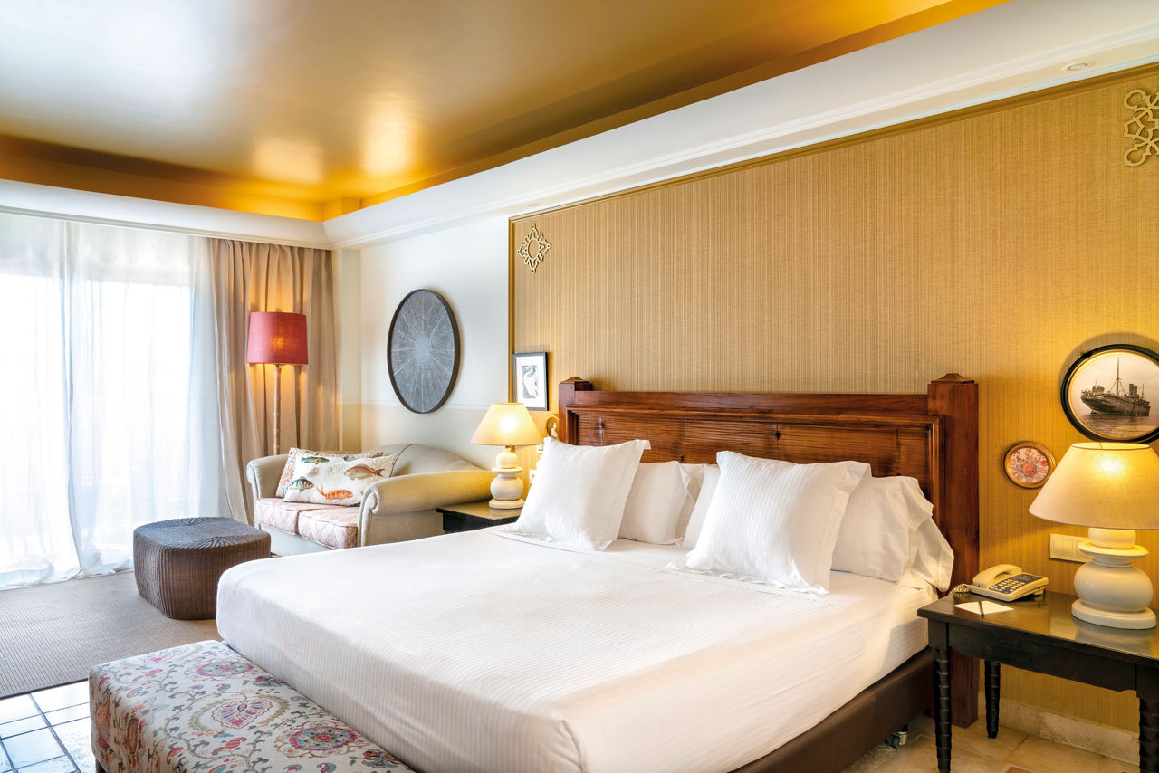 Double or Twin rooms sleep 2 adults and have a terrace, air-conditioning, full bathroom with hydromassage shower and large bath, hairdryer, bathrobes, slippers, magnifying mirror, a selection of high quality complimentary items and a pillow menu for personalised comfort. Double or Twin Superior rooms with Side Sea View, Double or Twin Superior rooms with Sea View, Junior suites with Side Sea View, Junior suites with Sea View, Villas Ground Floor Garden with Jacuzzi and Villa Top Floor Solarium with Jacuzzi are also available.