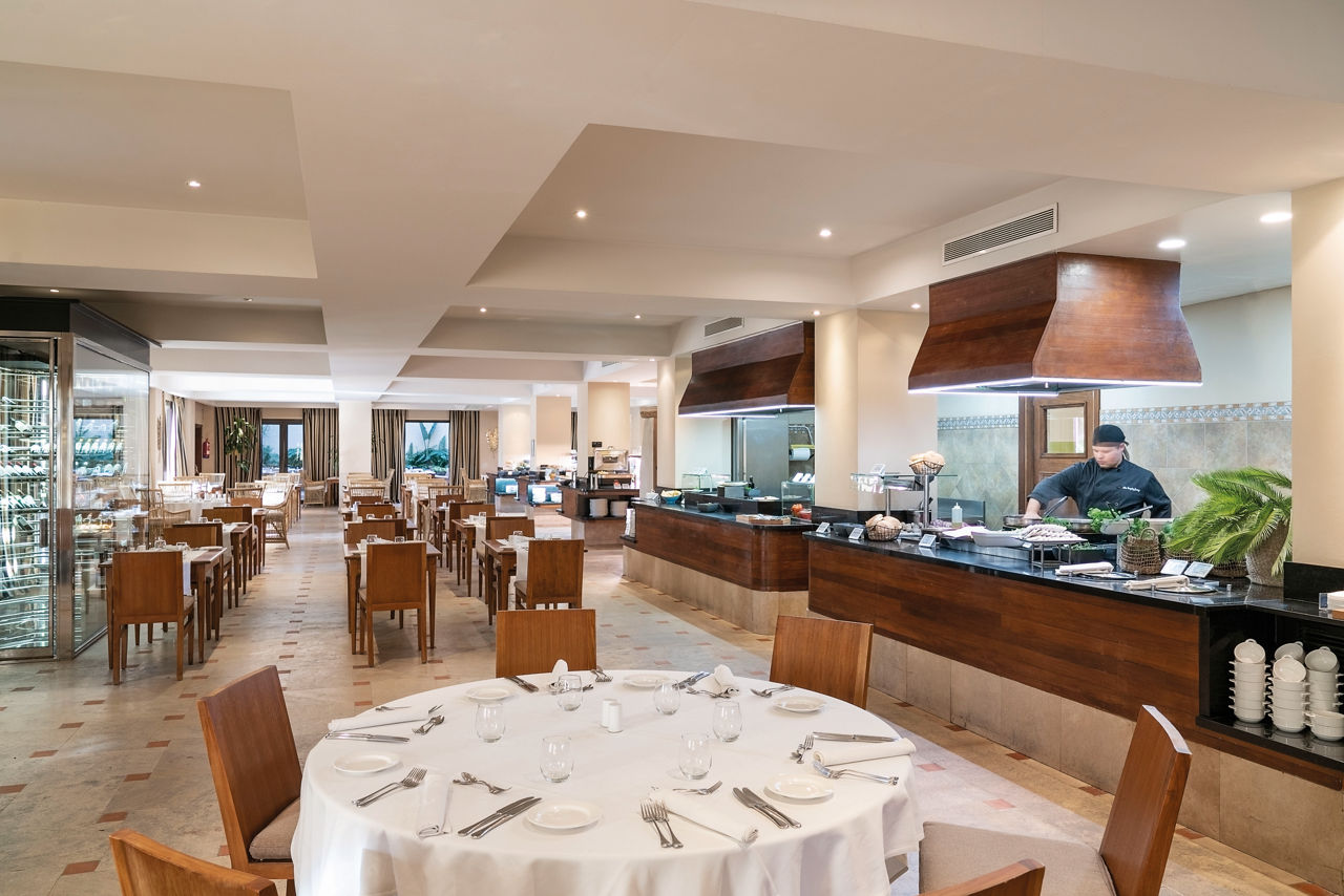 El Buffet restaurant with show cooking; El Gourmet Canario lunchtime à la carte restaurant; La Jaima à la carte restaurant serving tapas and Spanish cuisine; La Biblioteca lounge bar.Entertainment