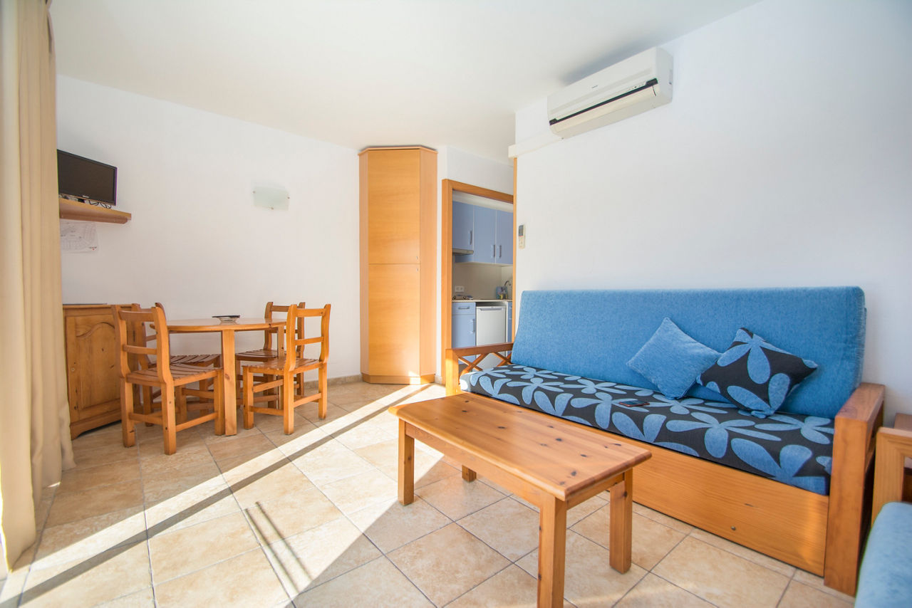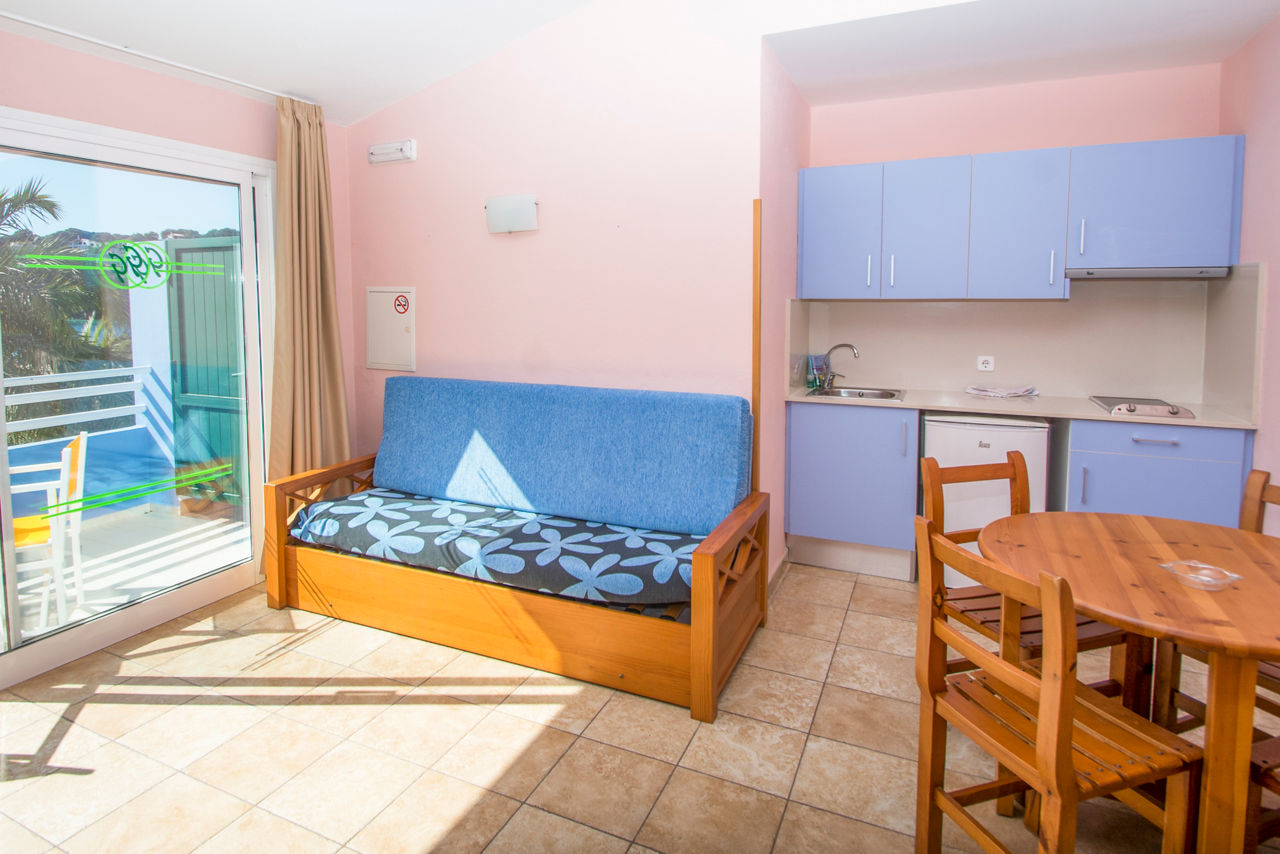 The Galdana Gardens Apartments are located in a prime position in the heart of the resort and only a stones throw away from the beach. Families, couples, sun-seekers, hikers and nature-lovers alike will find this complex the ideal choice for a superb holiday in the picturesque resort of Cala Galdana. The spacious apartments come well-equipped. With its excellent value for money and welcoming Menorcan charm, its easy to see why Galdana Gardens Apartments is such a popular choice.One Bedroom apartments sleep up to 2 adults and 2 children and have bathroom containing a bath with shower attachment, air-conditioning, flat screen television, double cooking rings, fridge, toaster, kettle, coffee making facilities and balcony or terrace.