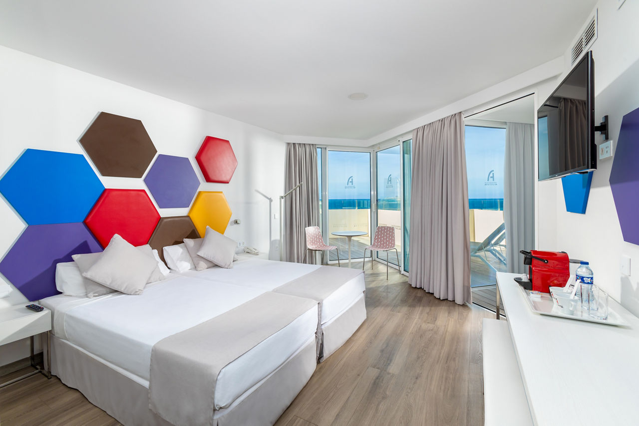 Facing the popular Troya Beach and close to a lively area, this hotel is in a fantastic location in one of Tenerife?s most popular resorts, Playa De Las Americas. There's plenty to do here with great facilities on offer including the Natural SpaDouble Comfort rooms sleep up to 3 adults and have bathroom containing a bath with shower attachment, air conditioning, hairdryer, flat screen television and balcony or terrace. Room upgrade options and Sole Use rooms are also available.