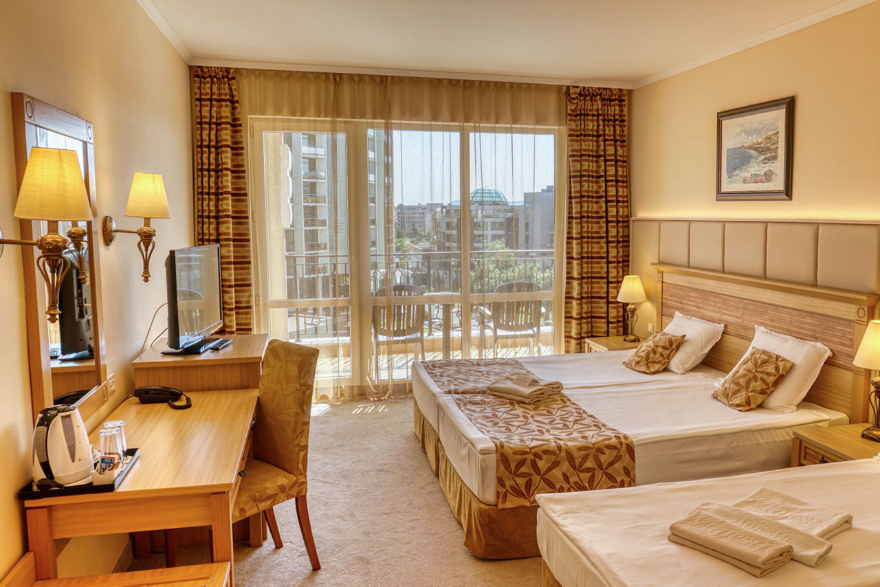 Beachfront with 1 complimentary parasol and 2 sunbeds per room (subject to availability). 50m from nearest shops, bars and restaurants. 2.2km from Sunny Beach resort centre.DIT Majestic Beach Resort