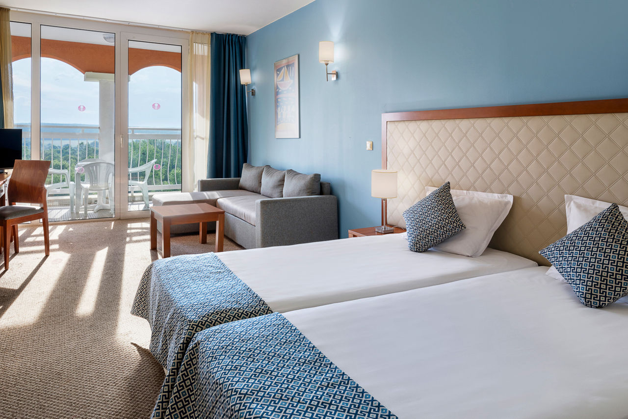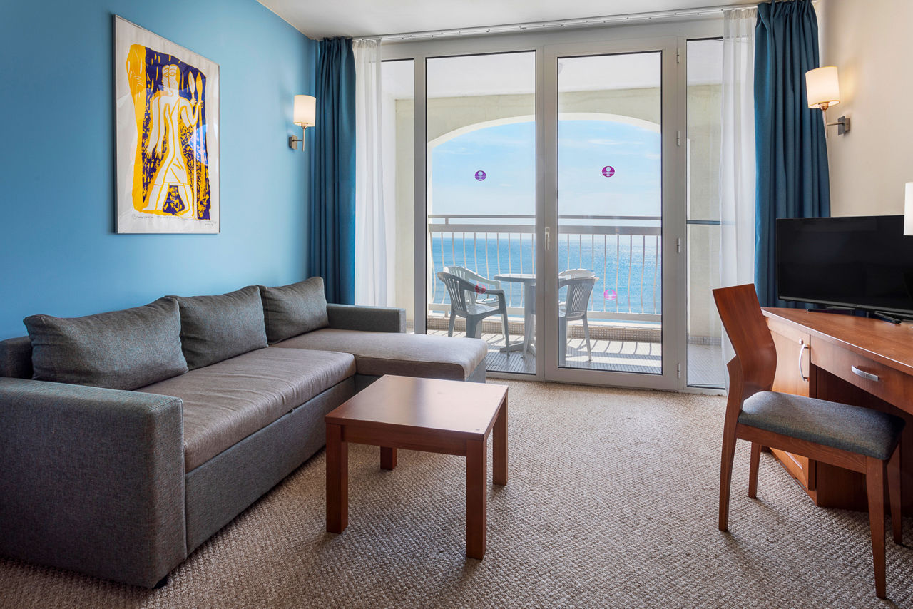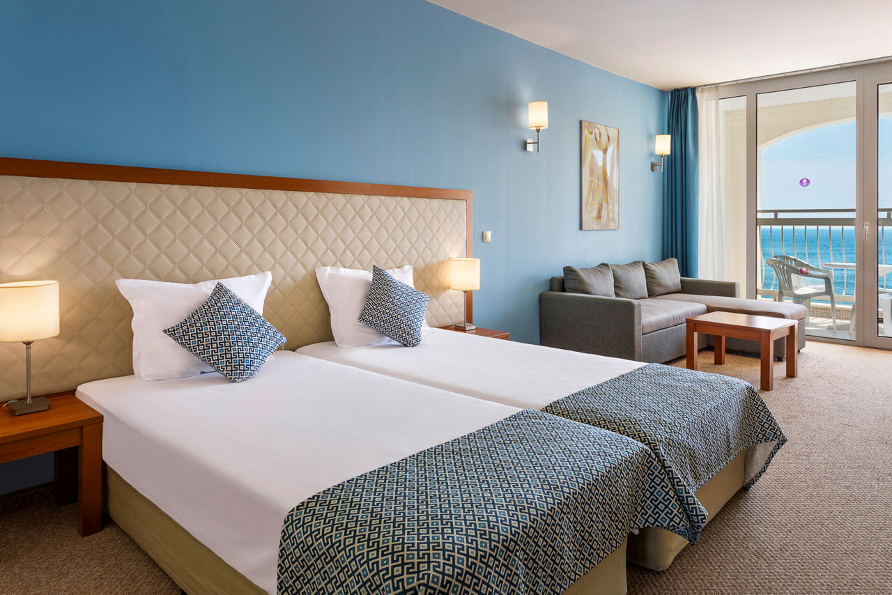 Beachfront, with complimentary use of sunbeds and parasols (subject to availability). 1.5km from the nearest shops and restaurants. 3km from Obzor resort centre. Shuttle bus to Obzor resort centre*.Sol Luna Bay Resort