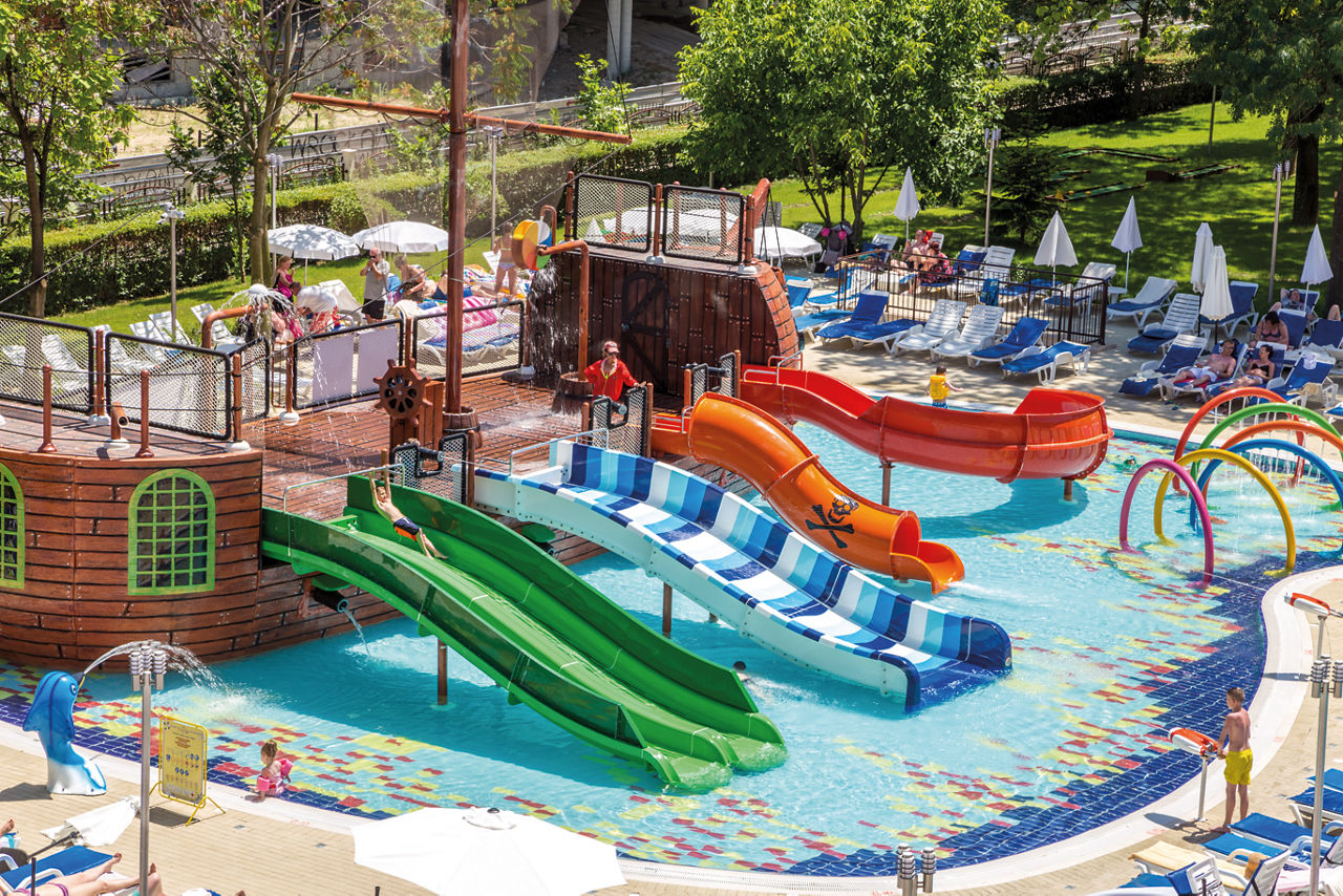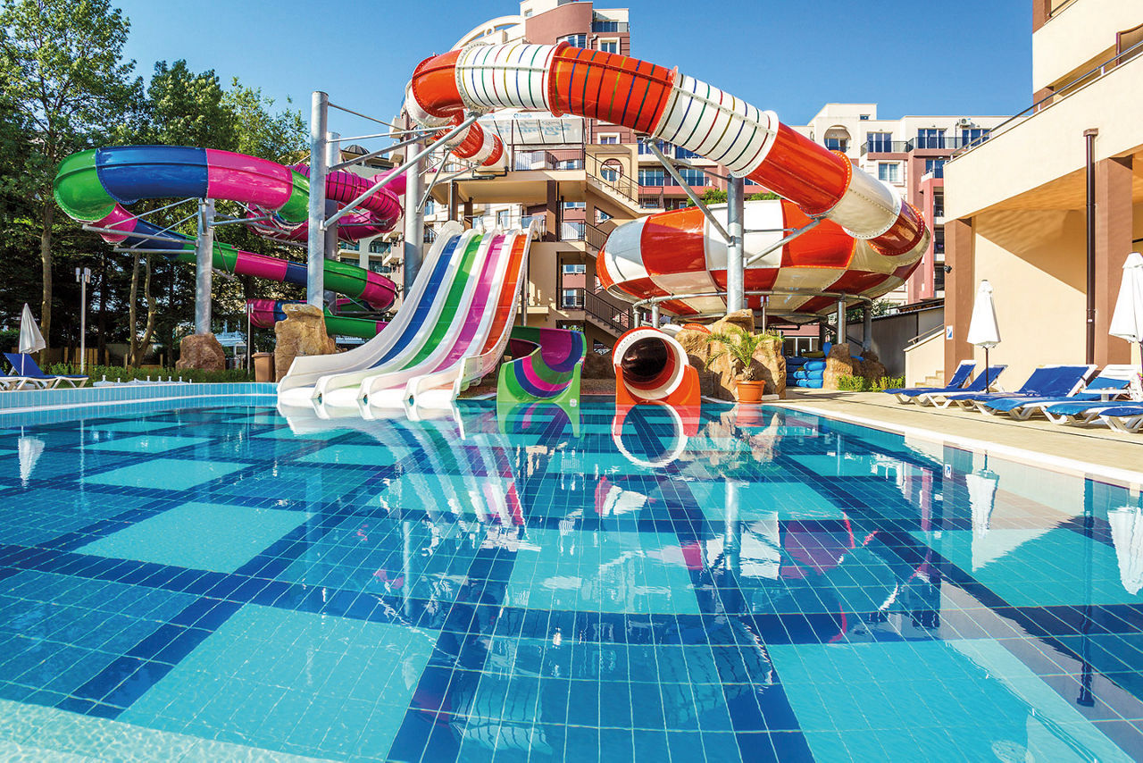 Looking for a fun-filled holiday in lively Sunny Beach? Laguna Park & Aqua Club ticks all the boxes! With four epic outdoor pools, super waterslides, and a pirate ship splash park, we'd call that guaranteed fun in the sun! Pick from a range of rooms, apartments and studios to suit who?s in tow. You?ll also be on All Inclusive as standard so mealtimes couldn?t be more of a doddle. Head out to the nearby beach to feel the sand between your toes, or stay onsite for the children?s club and mini-golf.Double and Twin rooms sleep up to 3 adults and have bathroom containing a shower, air conditioning, television and balcony. Room upgrade options and Sole Use rooms are also available.