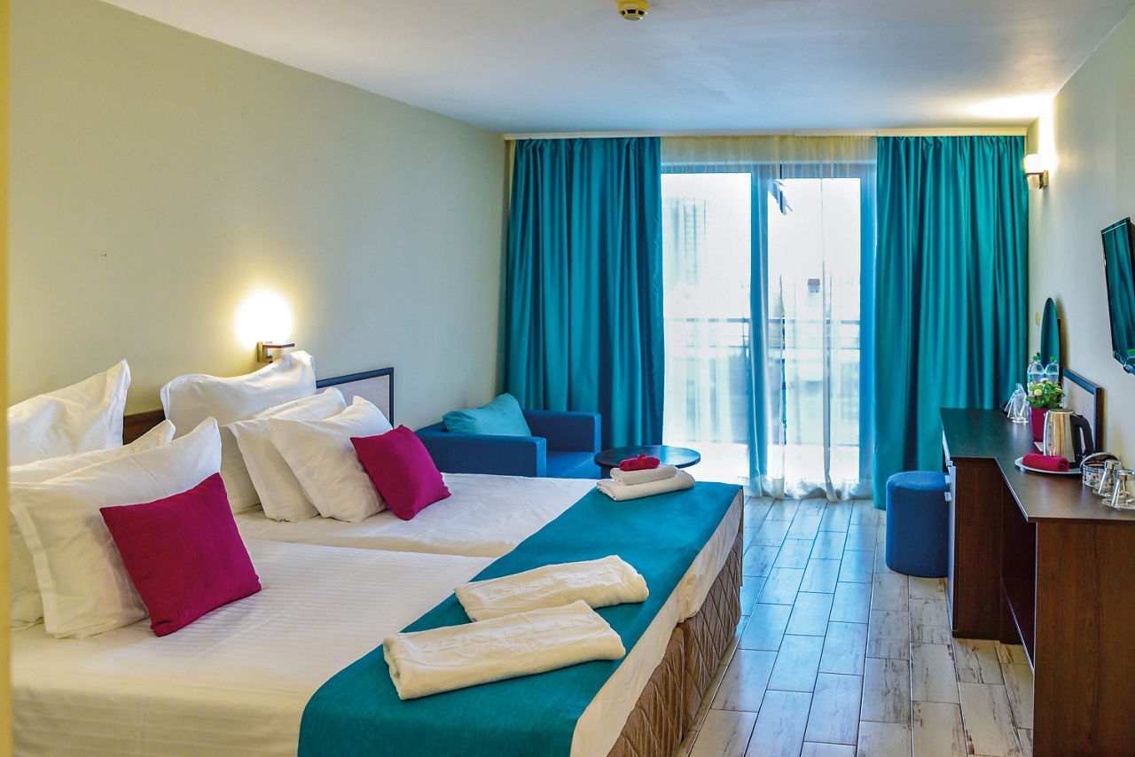 With a fantastic location close to the beach and bustling bars, cafes, and restaurants, the Meridian Hotel is perfectly placed for making the most of your Sunny Beach holiday. Rooms are bright with a pop of colour, and there's a pool on-site and a choice of bars. But our favourite perk has got to be the superb panoramic views from the buffet restaurant on the top floor!Book today for only £60 deposit per person!