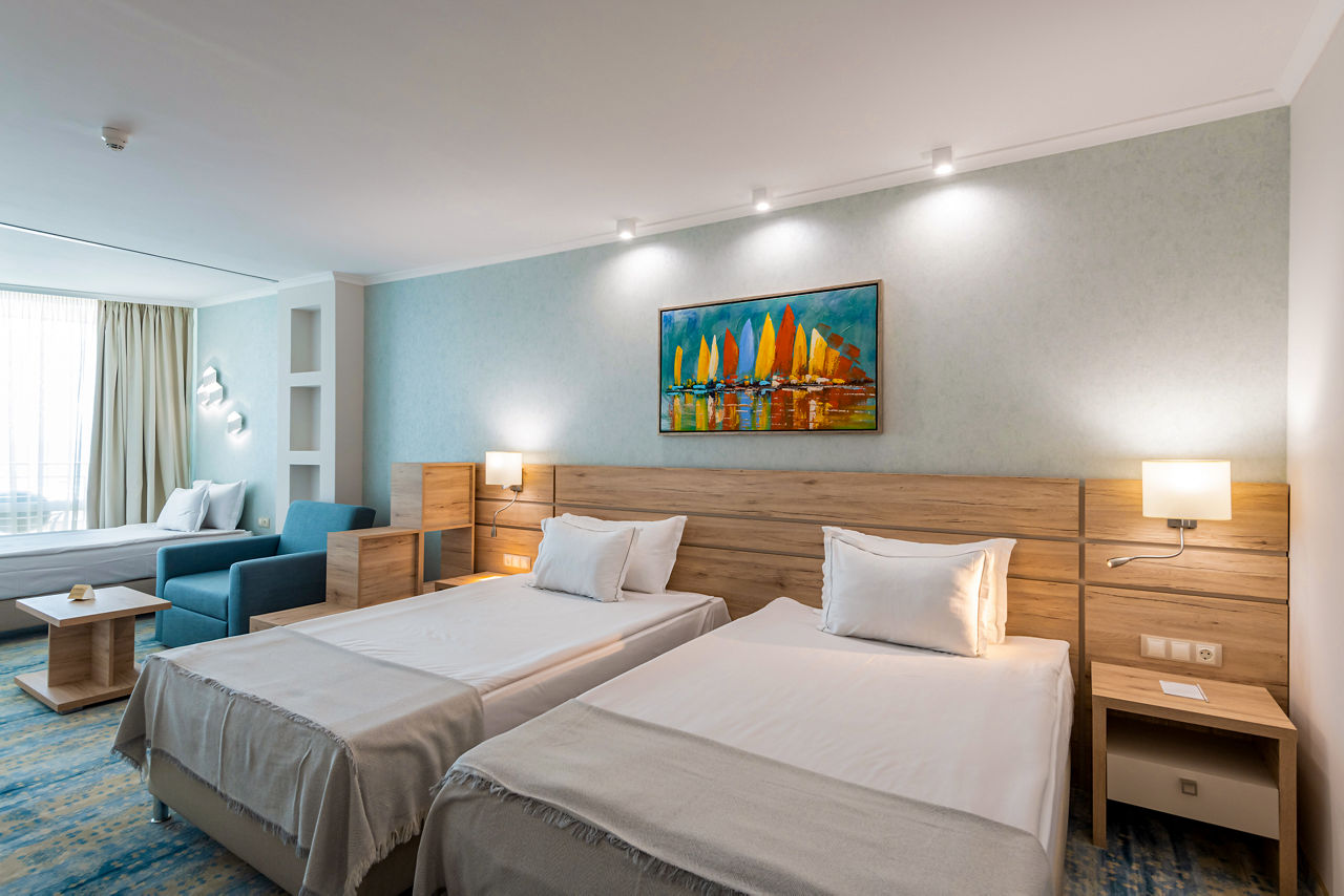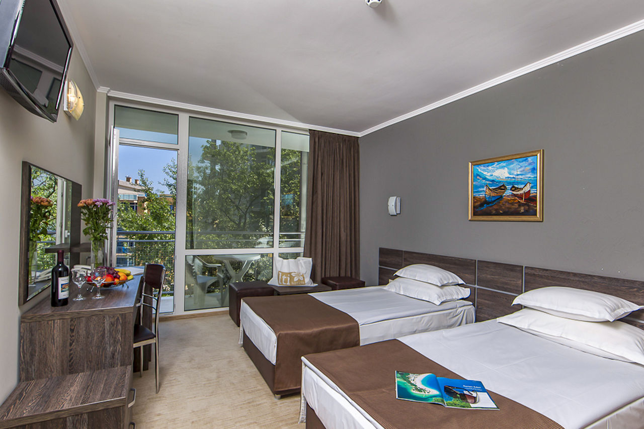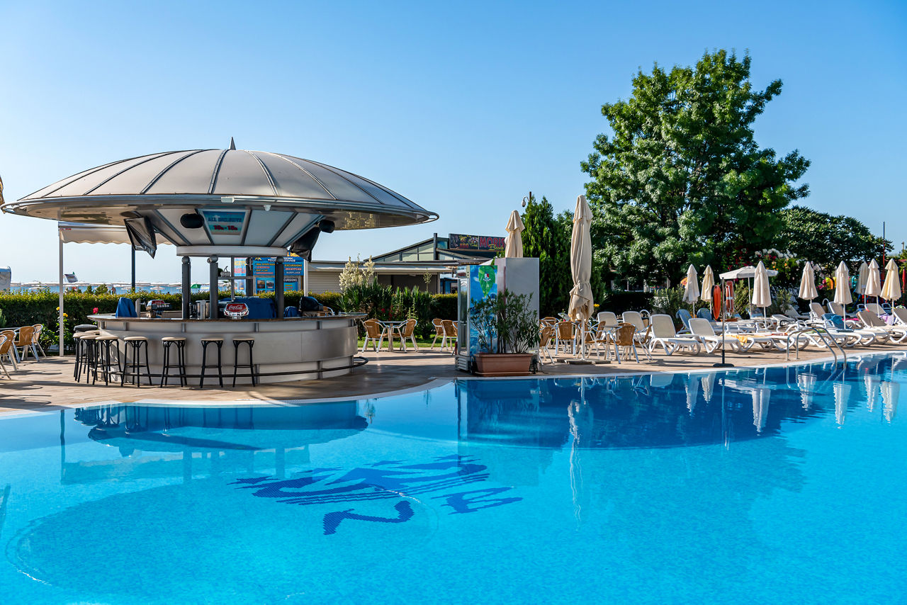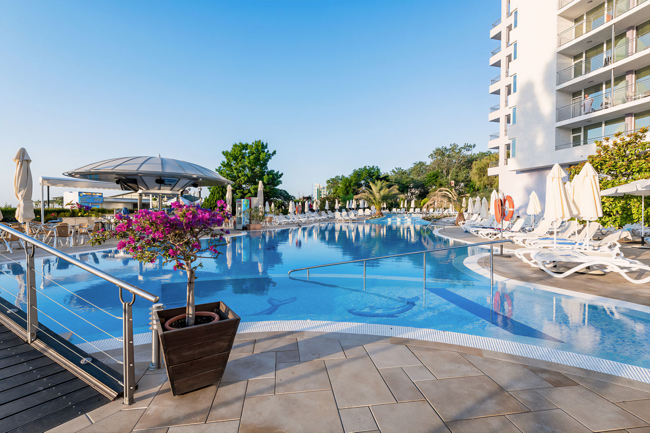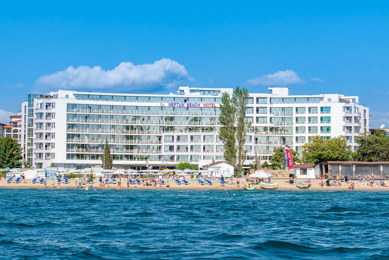 Beachfront with complimentary sun loungers and parasols (June - September). 350m from Sunny Beach resort centre.Sentido Neptun Beach