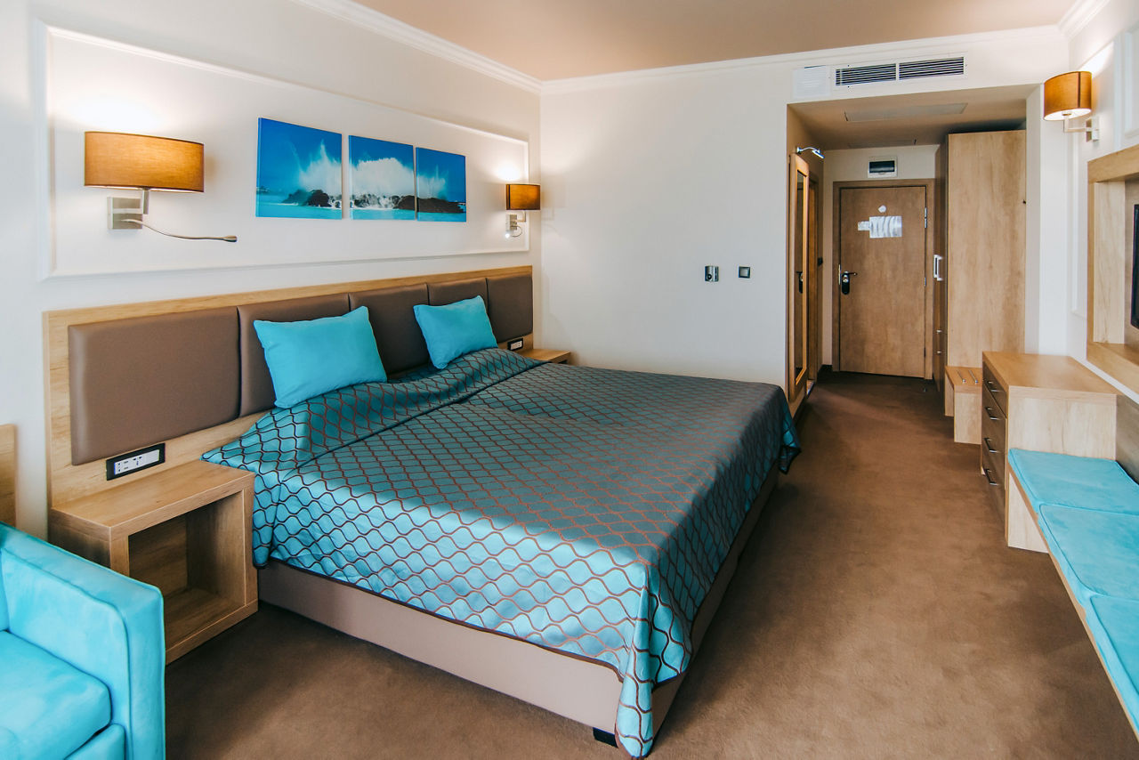 Tiara Beach Hotel, located on Bulgaria?s Black Sea coast, is a great spot for a fun and relaxing vacation. With an all-inclusive package, guests can enjoy meals, drinks, and snacks without a worry. The hotel is just a short walk from the beach and features a pool with slides, perfect for families and kids. Simple and comfortable rooms offer great sea views, while a range of activities and entertainment keep everyone entertained. It?s a fantastic option for a laid-back stay by the sea.Standard rooms with Park View sleep up to 3 adults and have bathroom with shower, air conditioning and balcony or terrace. Room upgrade options are also available.