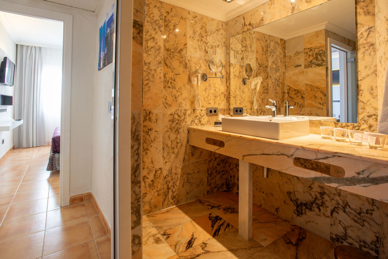 Twin or Double rooms sleep up to 2 adults and have a bathroom containing a bath with shower attachment, air conditioning, hairdryer, flat screen television, mini bar and balcony or terrace. Single rooms, Triple rooms, Family rooms and Deluxe rooms are also available. The Deluxe rooms have the following included - renovated bathroom, flat screen TV, new furniture, modern decoration, welcome gift and bathrobe and views as they are on the higher floors.