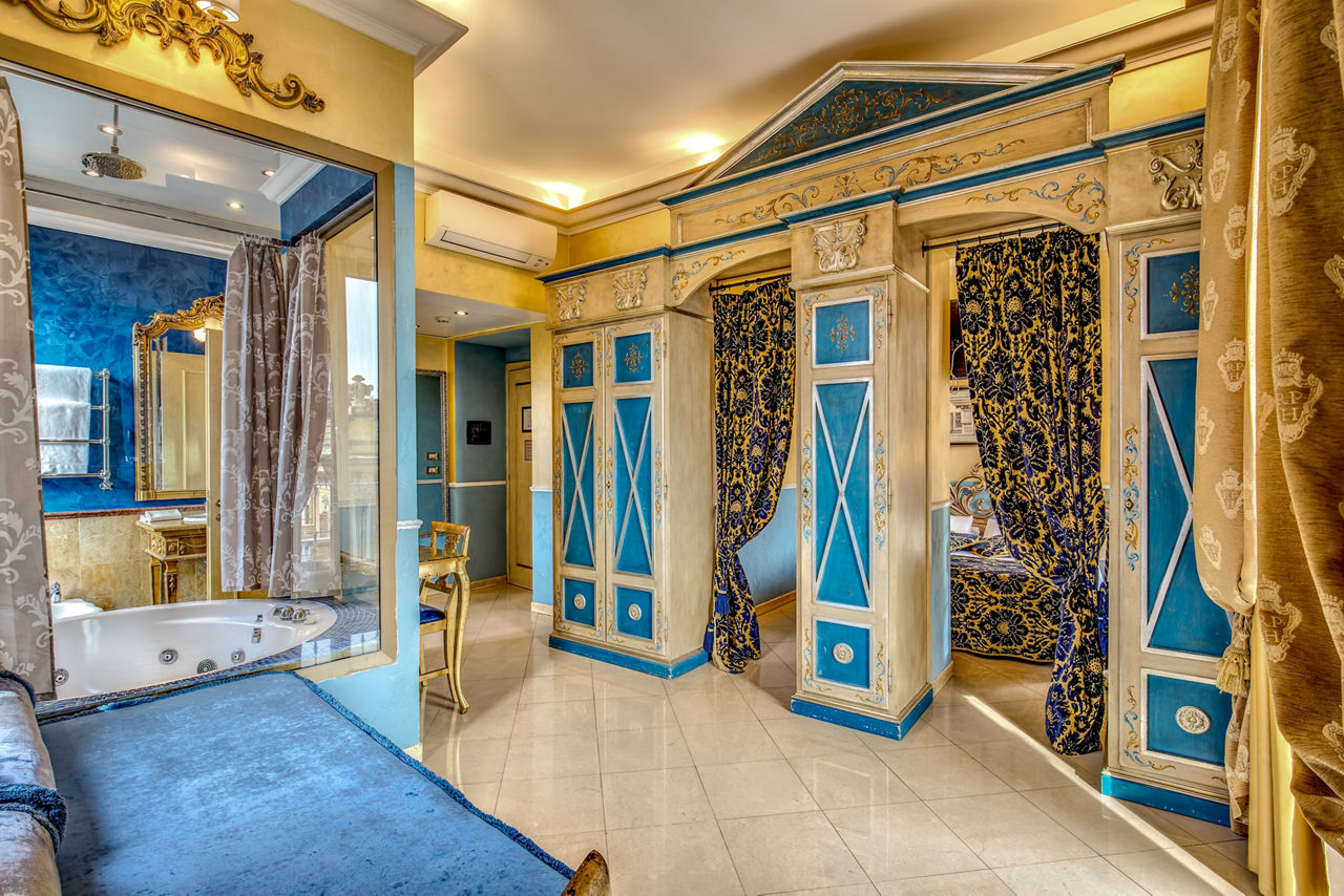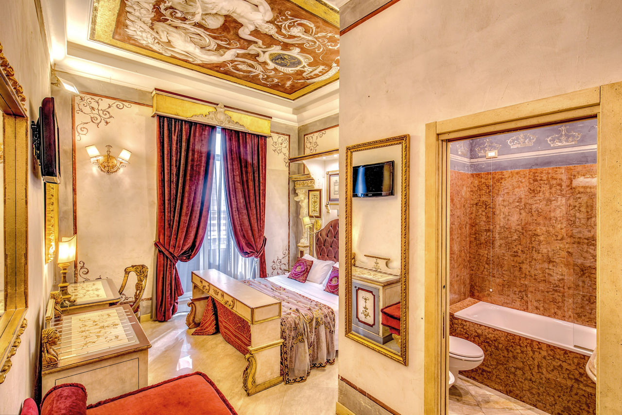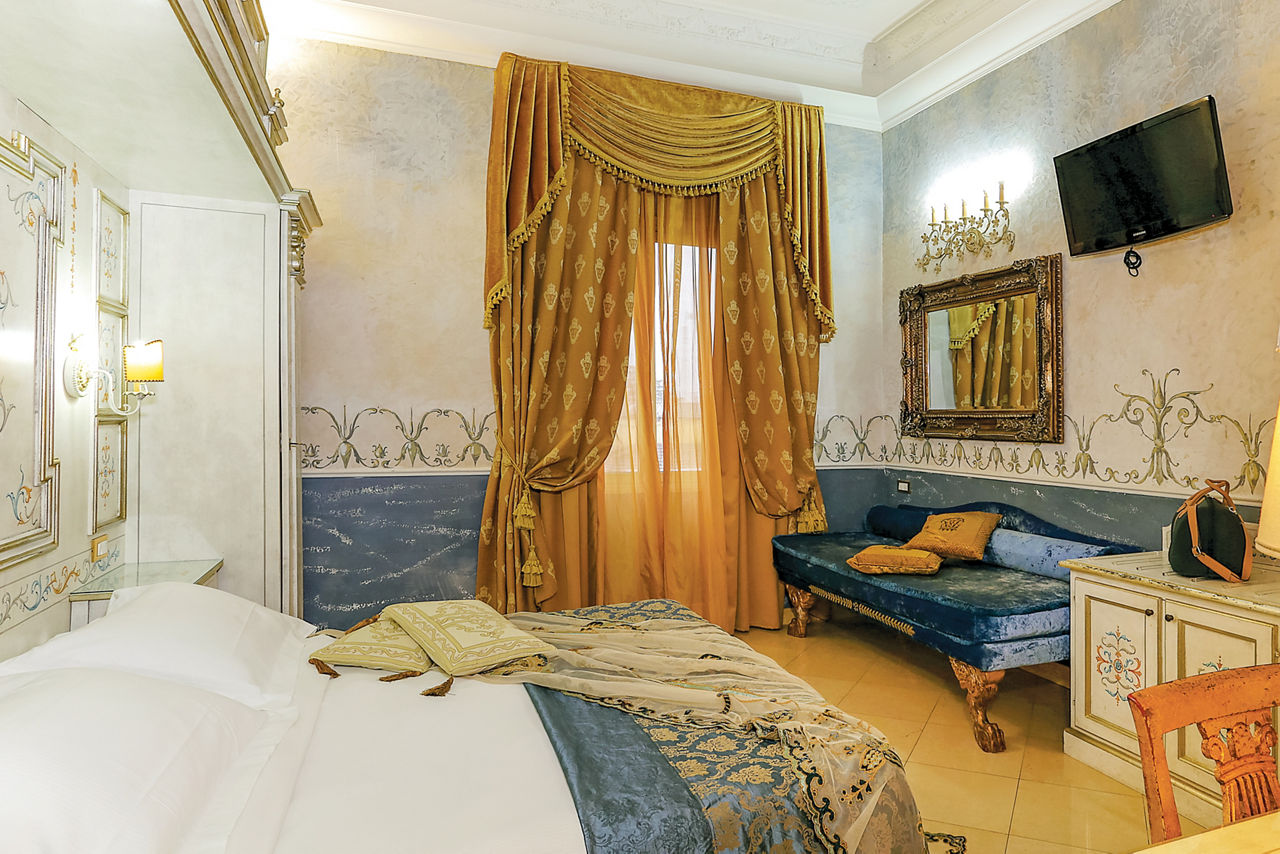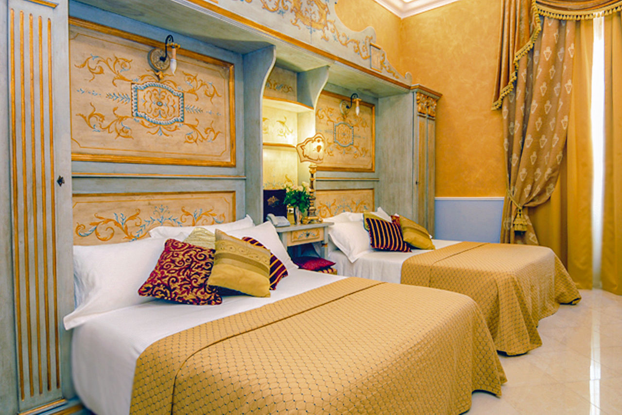 The lavishly styled Romanico Palace Luxury HotelClassic Double or Twin rooms sleep up to 2 adults and have bathroom with shower or bath, hairdryer, air conditioning, satellite TV, mini-bar* and safe*. Classic Double or Twin rooms for Sole Use, Deluxe Double rooms and Triple rooms are also available on request.