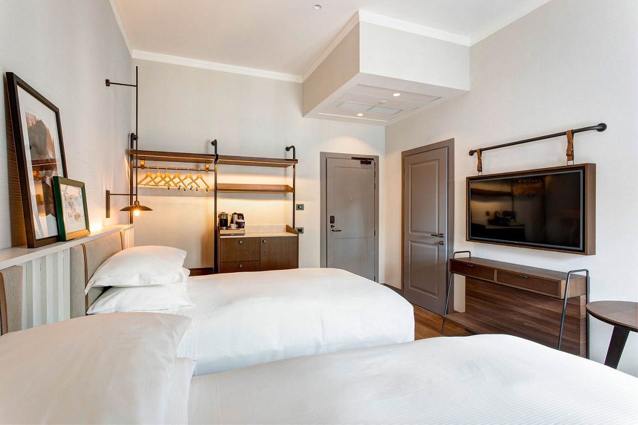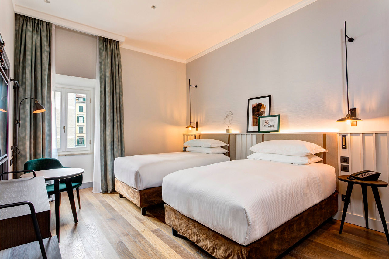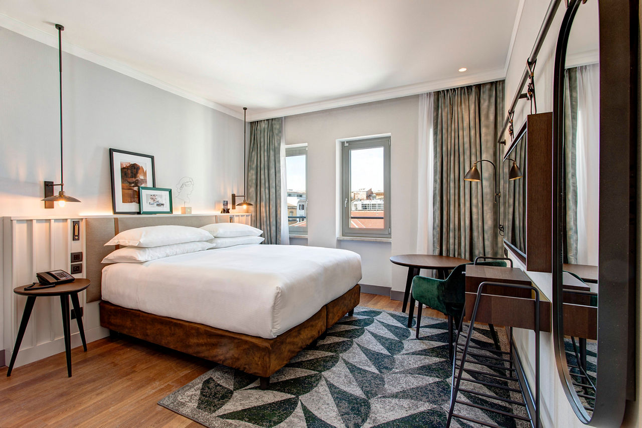 The flagship DoubleTree by Hilton Rome Monti showcases stylish design with cool, contemporary interiors. Sitting in the heart of Monti, a charming neighbourhood known for its cafes and bohemian fashion shops, the hotel offers a peaceful green oasis in this bustling city. The onsite restaurant will set you up for the day and after exploring the must see sights of Rome, you can relax with a cocktail on the roof top terrace, offering a view over the Santa Maria Maggiore abbey. With a choice of rooms and suites, you will find a space to call your own in the heart of Rome.Guest rooms sleep 2 adults and have a bathroom containing a shower, air conditioning, hairdryer, slippers, flat screen television, coffee making facilities and mini bar*. Room upgrade options are also available.