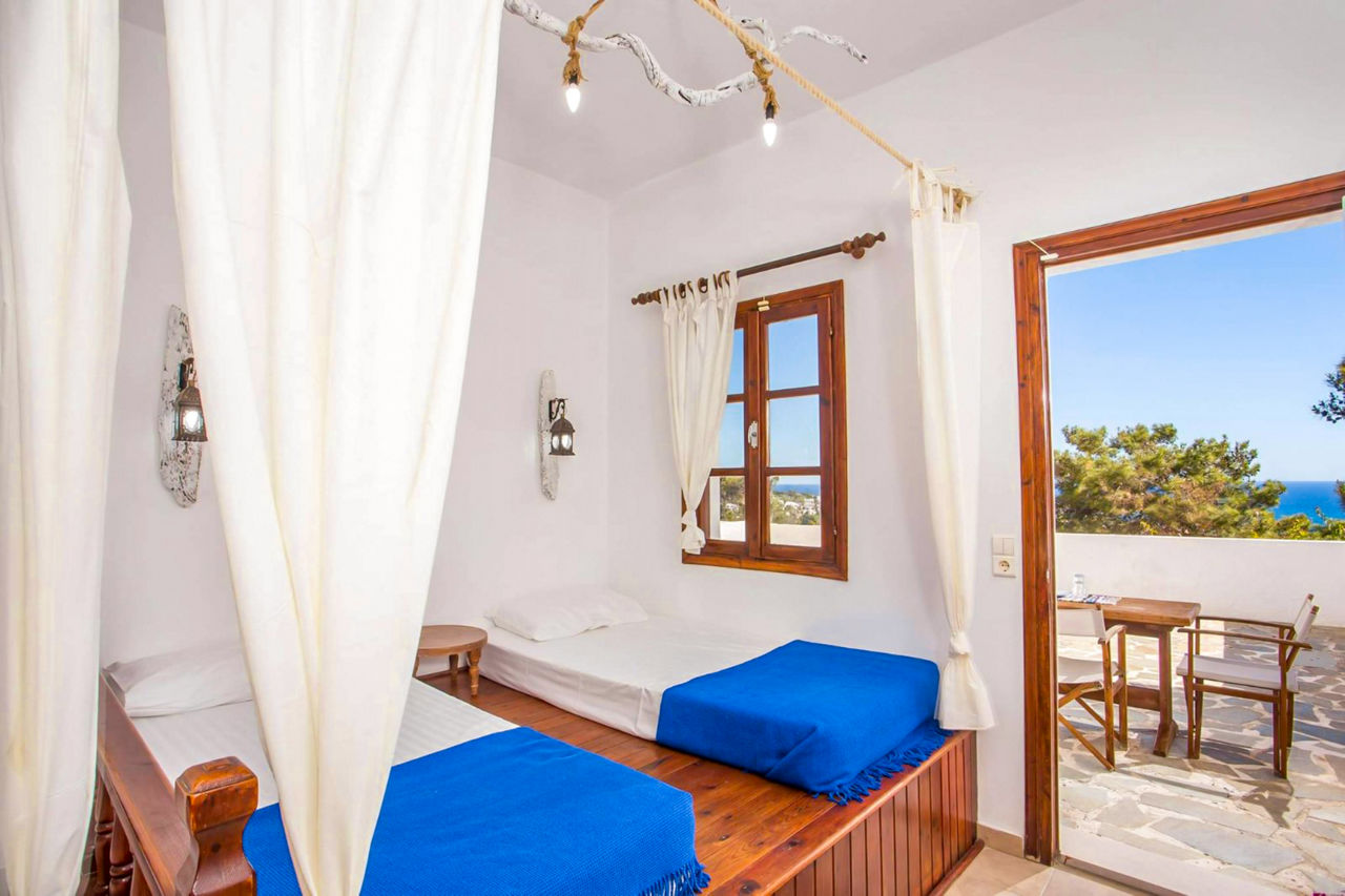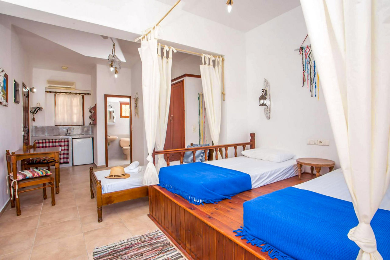 Nestled on the hillside, the friendly Karpathios Studios offer a quiet self catering base from which to enjoy a relaxing holiday, with their traditional Lindian style beds making you feel right at home. There are many beaches nearby and the resort centre of Pefkos is just a short walk away, down a steep hill. Surrounded by pine forests, those seeking a quaint yet traditional getaway will enjoy all that the Karpathios Studios has to offer.Studios sleep up to 3 people and have bathroom with shower, air-conditioning*, kitchenette with fridge and cooking rings, and a balcony or terrace (some shared).
