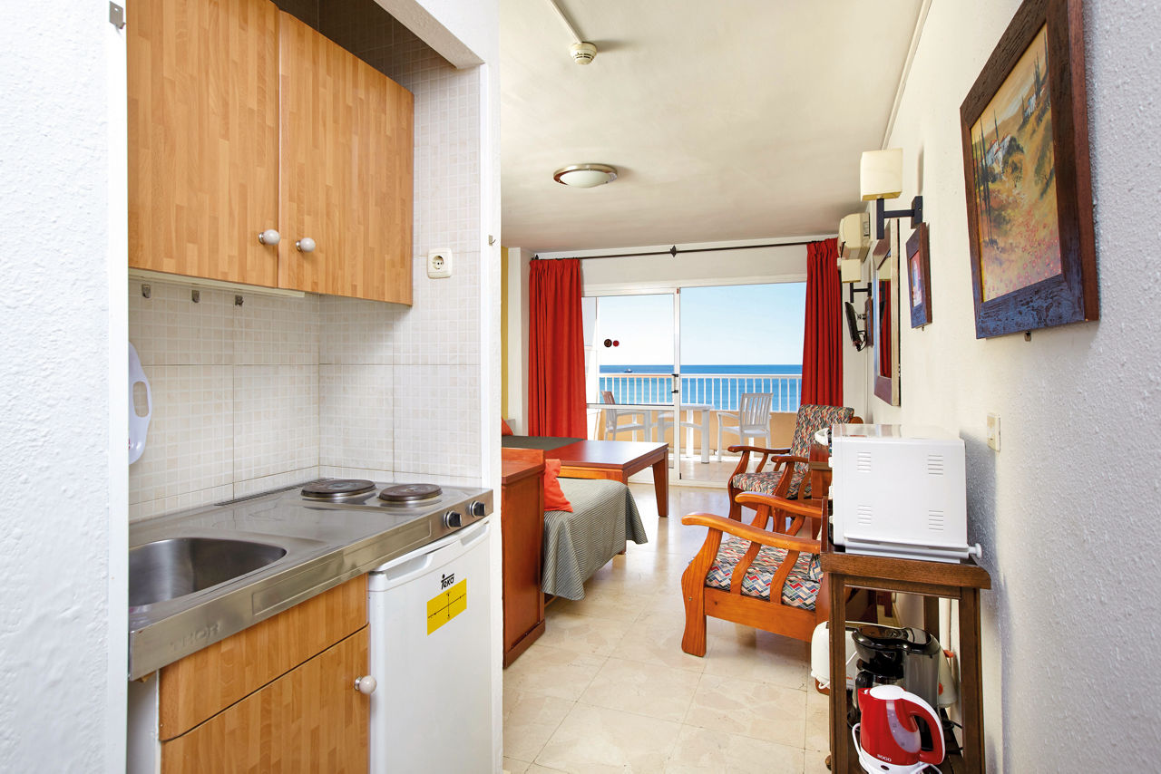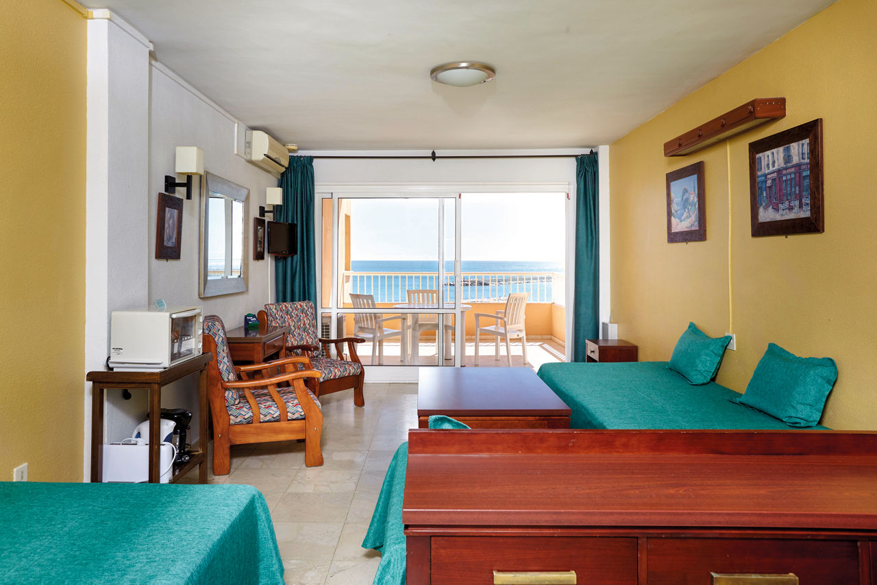 When it comes to beachfront locations, you can?t get much closer than the Jabega Apartments, which are just across the promenade from a long sandy beach. The rooms are equipped with basic cooking facilities ? perfect for those wanting to go Self Catering on their holiday. If you fancy a drink downstairs, there?s a bar serving a range of international tipples along with daily evening entertainment. The best bit? It?s great value! The resort centre of Fuengirola is just a hop skip and a jump away too, boasting plenty of shops, bars and restaurants.Studios sleep up to 3 adults and have a full bathroom, hairdryer, air conditioning, satellite TV, free Wi-Fi, kitchenette with small oven, fridge, coffeemaker and toaster, and a balcony.