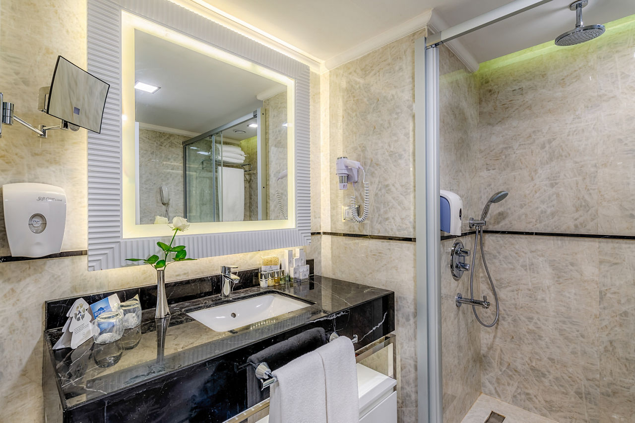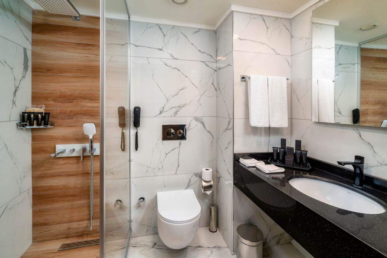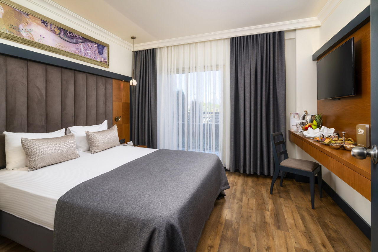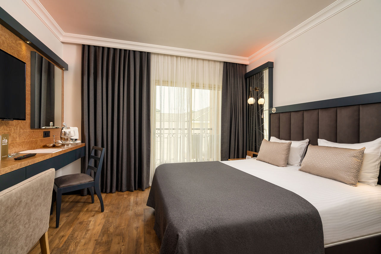 Standard Double and Twin rooms sleep up to 3 adults and have bathroom containing a bath, air conditioning, hairdryer, flat screen television, tea and coffee making facilities, bathrobe and slippers and balcony. Room upgrade options and Sole Use rooms are also available.