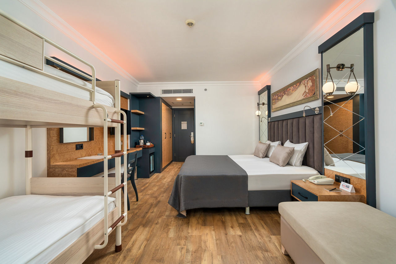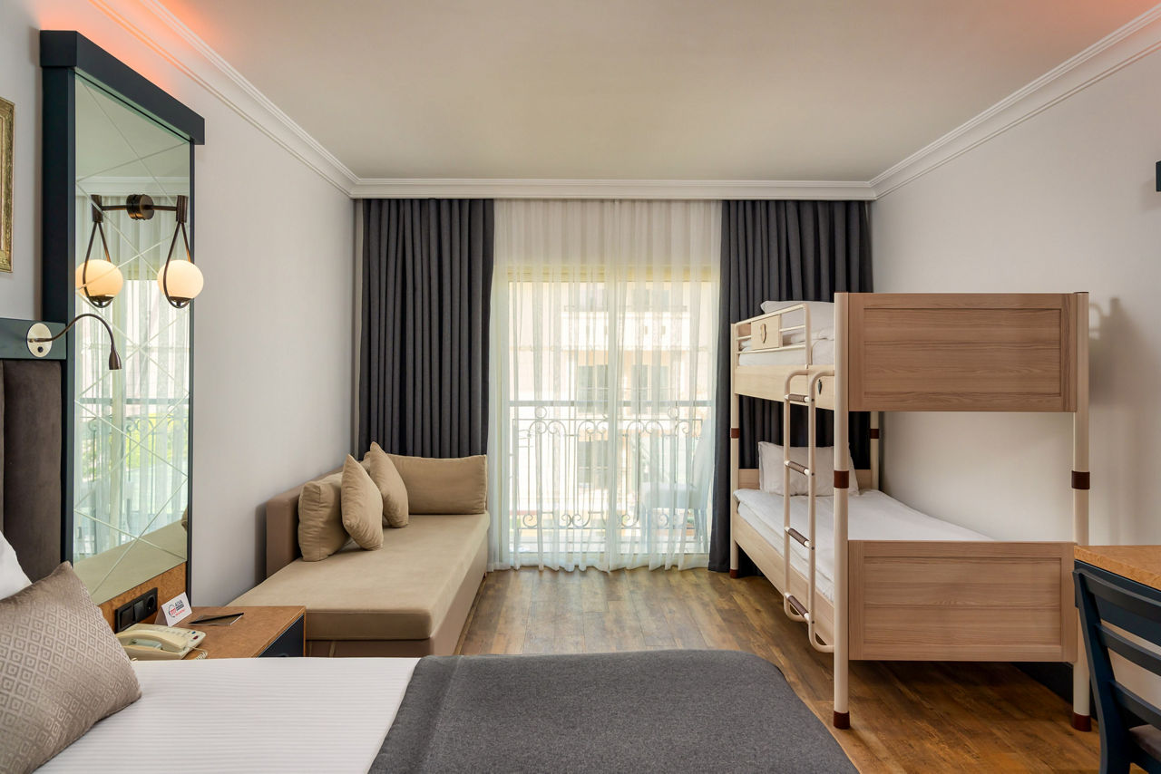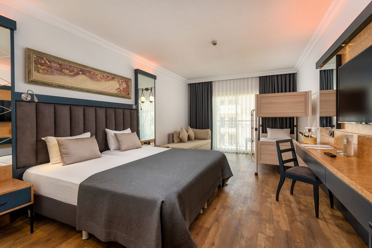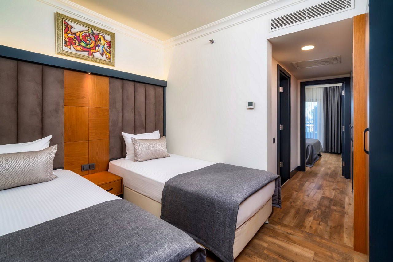 Whether it?s a family trip or a couple?s getaway, this deluxe hotel is the perfect ticket. This hotel provides outstanding facilities such as a relaxing spa and gym, eight pools, ten bars and a wonderful kids club. The luxurious rooms pair amazingly with the gardens surrounding the resort alongside the stunning beachfront right at your doorstep! With an array of fantastic All Inclusive facilities and a ?la carte restaurants on hand, you simply will not want to leave this haven.Standard Double and Twin rooms sleep up to 3 adults and have bathroom containing a bath, air conditioning, hairdryer, flat screen television, tea and coffee making facilities, bathrobe and slippers and balcony. Room upgrade options and Sole Use rooms are also available.