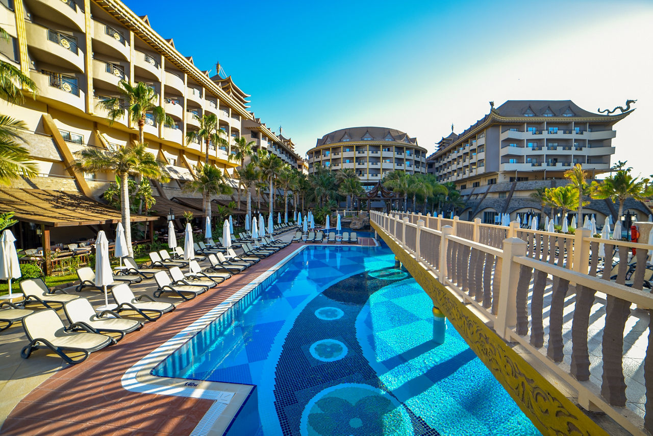Situated in Side, the Royal Dragon Hotel invites you to your next Turkish getaway. With an extensive, jam packed entertainment programme, everyone will be kept busy. Young ones will adore the on site aquapark and the fun filled mini club, while adults can indulge in some ?me time? at the spa or relax on the private beach. There?s a wide range of restaurants and bars to explore, and you?ll feel at ease in the comfortable rooms. Families and couples alike are well catered for at the Royal Dragon Hotel.Book today for only £60 deposit per person!