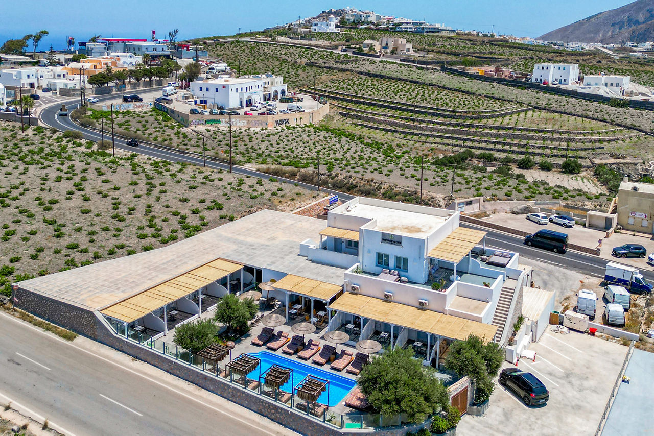 1km from Pyrgos resort centre. 5km from Fira. 5.7 km from Kamari Beach.Impressive One