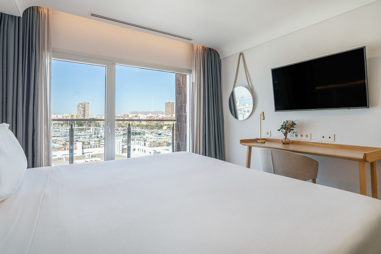This charming hotel is located between El Postiguet Beach and Alicante Marina, offering excellent panoramic views of the marina and bay. Start your day enjoying a delicious buffet breakfast in the restaurant, which boasts a truly spectacular view, don?t miss the gorgeous sunrise! The hotel is close to the marina, beach and city centre so exploring couldn?t be easier.Standard rooms with Port View sleep up to 3 adults and have bathroom containing a bath or shower, air conditioning(Apr-Oct), hairdryer, flat screen television, mini-bar, safety deposit box and balcony. Room upgrade options and Sole Use rooms are also available.