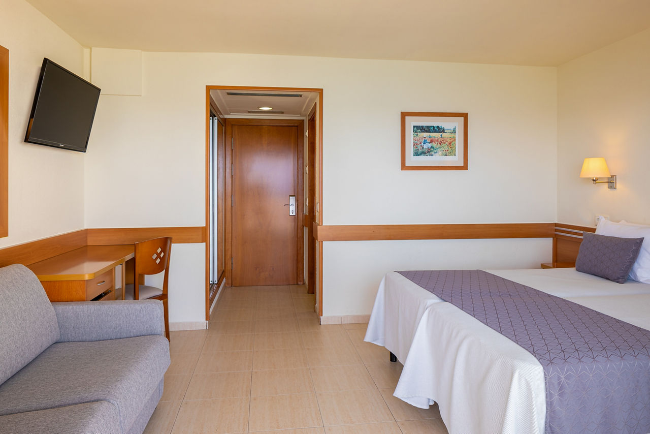 The htop Pineda Palace boasts a fantastic location overlooking Pineda de Mar?s golden beach and only a short walk from the resort centre of Pineda de Mar where you?ll find a range of tapas restaurants and bars. At the hotel, you will be able to relax by the pool during the day and in the evening enjoy the hotel?s extensive entertainment programme. The hotel is recommended for adults, offering a peaceful and relaxing atmosphere.Twin rooms sleep up to 4 adults and 2 children and have a full bathroom with shower and bath, hairdryer, air conditioning, satellite TV and a balcony or terrace.