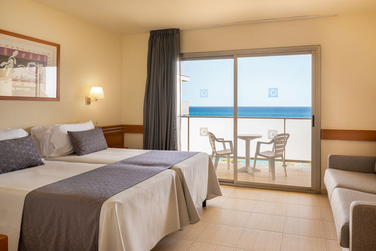 Twin rooms sleep up to 4 adults and 2 children and have a full bathroom with shower and bath, hairdryer, air conditioning, satellite TV and a balcony or terrace.