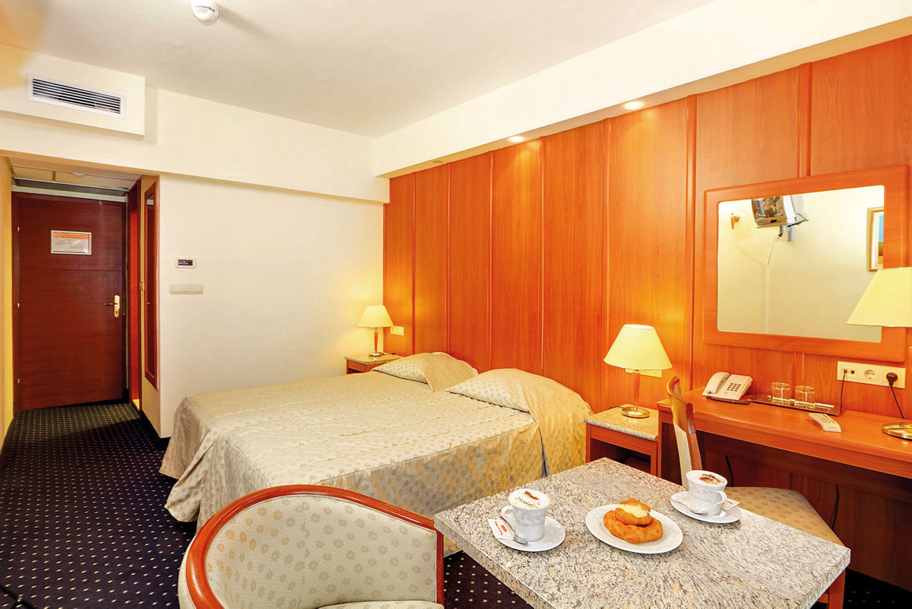 Standard Double and Twin rooms with Inland View sleep up to 2 adults and have a bathroom with bath or shower, air conditioning, hairdryer and television. Superior rooms and Junior suites, sleeping up to 3 adults, are also available.