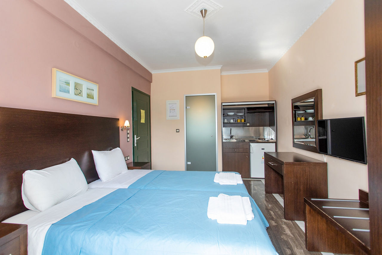 Double rooms sleep up to 2 adults and have a bathroom containing a shower, air conditioning, kitchenette with 2 cooking rings, fridge, hairdryer, kettle, television and balcony or terrace.