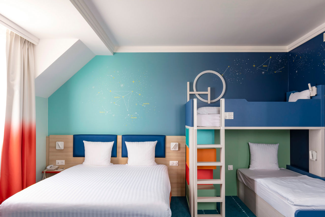 As soon as you enter the Grand Magic Hotel you'll be blown away by the optical illusions and colourful themes running through the interior of the hotel. Offering great value for money and a warm friendly welcome this hotel has plenty of facilities for children including an indoor pool plus a gym for the grown ups! The complimentary shuttle bus takes you the magical Disneyland? Paris park where you can spend all day enjoying the rides and relax back at the hotel in the evening. Comfortable, spacious rooms ensure you get a good nights sleep before starting all over again the following day. With its friendly setting and lovely countryside views, this property is a wonderful, memorable base for visitors eager to see Disneyland? Paris, the city of Paris and the surrounding region.Double or Twin rooms have bathroom containing a bath with shower attachment, air conditioning, hairdryer, flat screen television, fridge, tea and coffee making facilities and safety deposit box. Room upgrade options and Family rooms with bunk beds are also available.