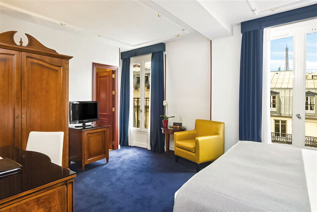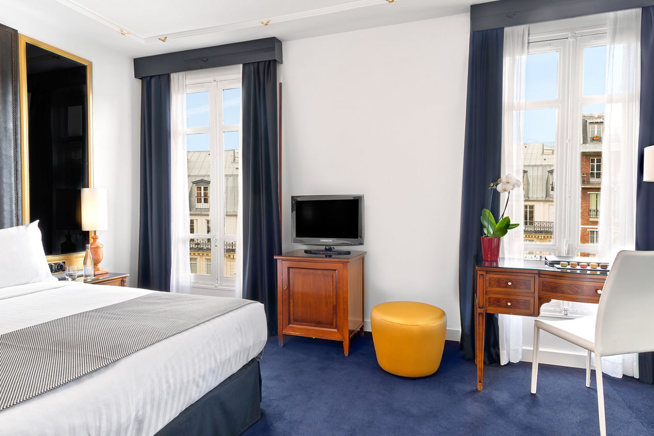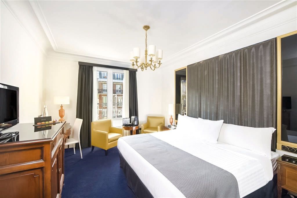 This charming hotel situated just off Place Victor Hugo, the fashion district of Paris, boasts a privileged location in the finest luxury quarter in Paris close to the River Seine. It is within easy reach of all the main attractions not to mention the main shopping areas of the city. Guests will love the spacious and bright rooms and the cozy lounge bar, an ideal place to relax before exploring the lively nightlife. Along with exquisite customer service, the Melia Paris Champs Elysees is the perfect choice for discovering Paris.Double and Twin rooms sleep 2 adults and have bathroom containing a bath or shower, air conditioning, hairdryer, flat screen television, mini-bar and safety deposit box. Room upgrade options are also available.