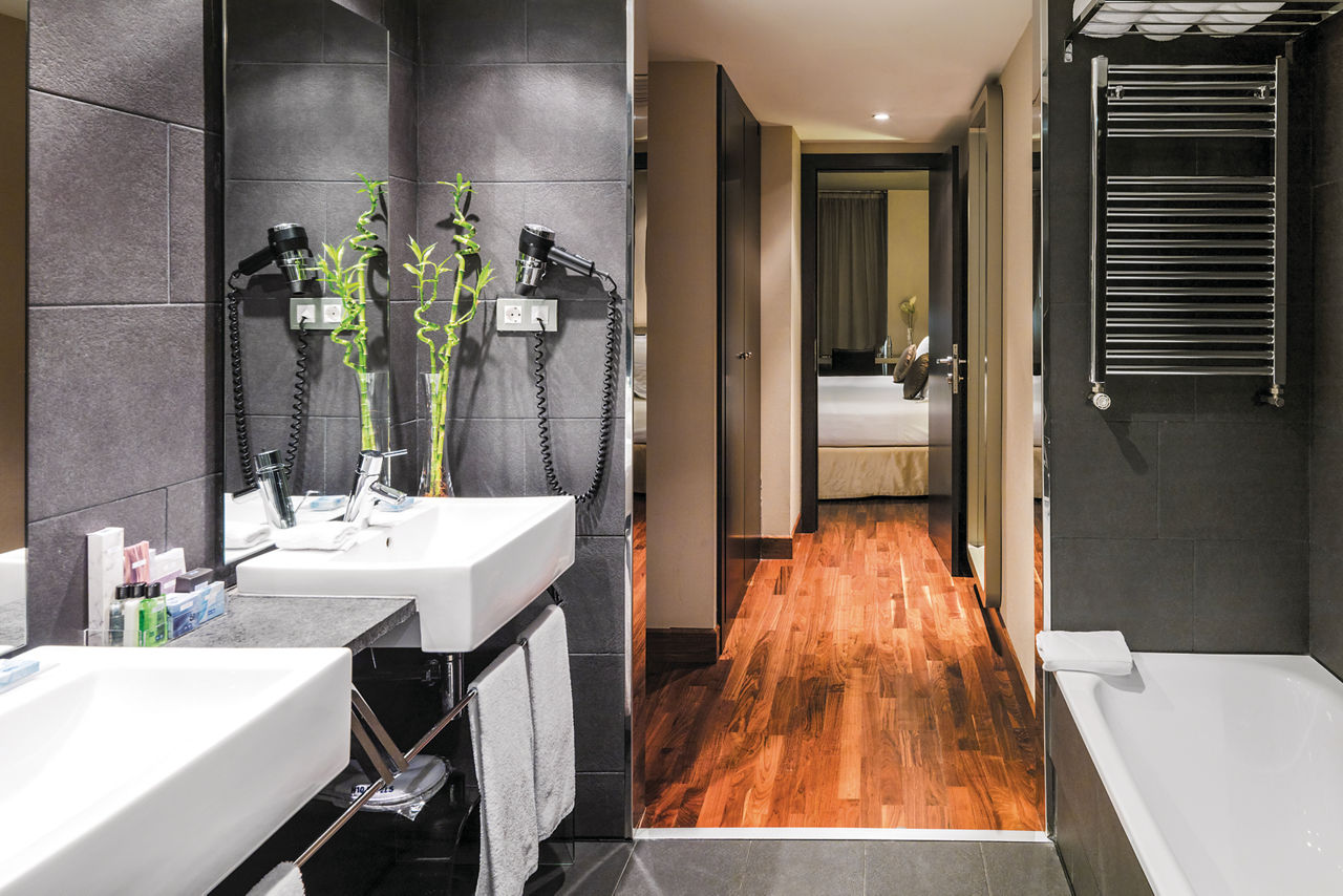 It?s not often you come across such a modern hotel inside an 18th-century building, but that?s exactly the case with H10 Casanova. Traditional Spanish details compliment the contemporary interior, inviting you to unwind and relax. The hotel boasts fab facilities too ? we?re talking a chic restaurant, cocktail bar, refreshing spa and even a gym overlooking the city! Working out on holiday never sounded so good. Did we mention there?s a plunge pool on the rooftop terrace too? Feast your eyes on Barcelona?s skyline.Double rooms sleep up to 3 adults and have bathroom containing a bath or shower, air conditioning (19 Apr-31 Oct), hairdryer, flat screen television, mini bar*, safety deposit box and balcony. Double rooms for Sole Use are also available.