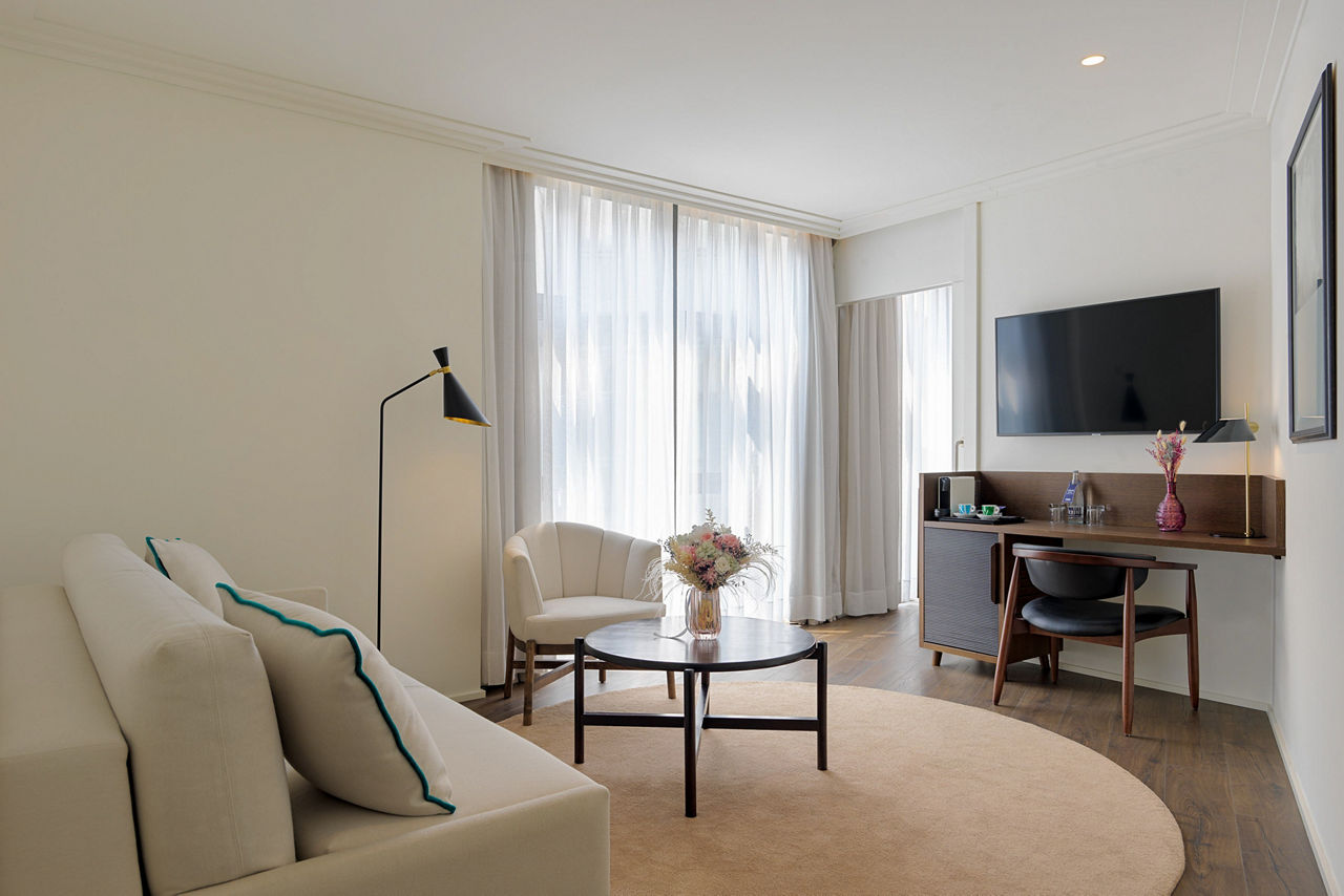 Double rooms sleep up to 3 adults and have bathroom containing a bath or shower, air conditioning (19 Apr-31 Oct), hairdryer, flat screen television, mini bar*, safety deposit box and balcony. Double rooms for Sole Use are also available.