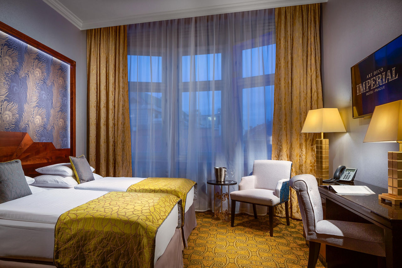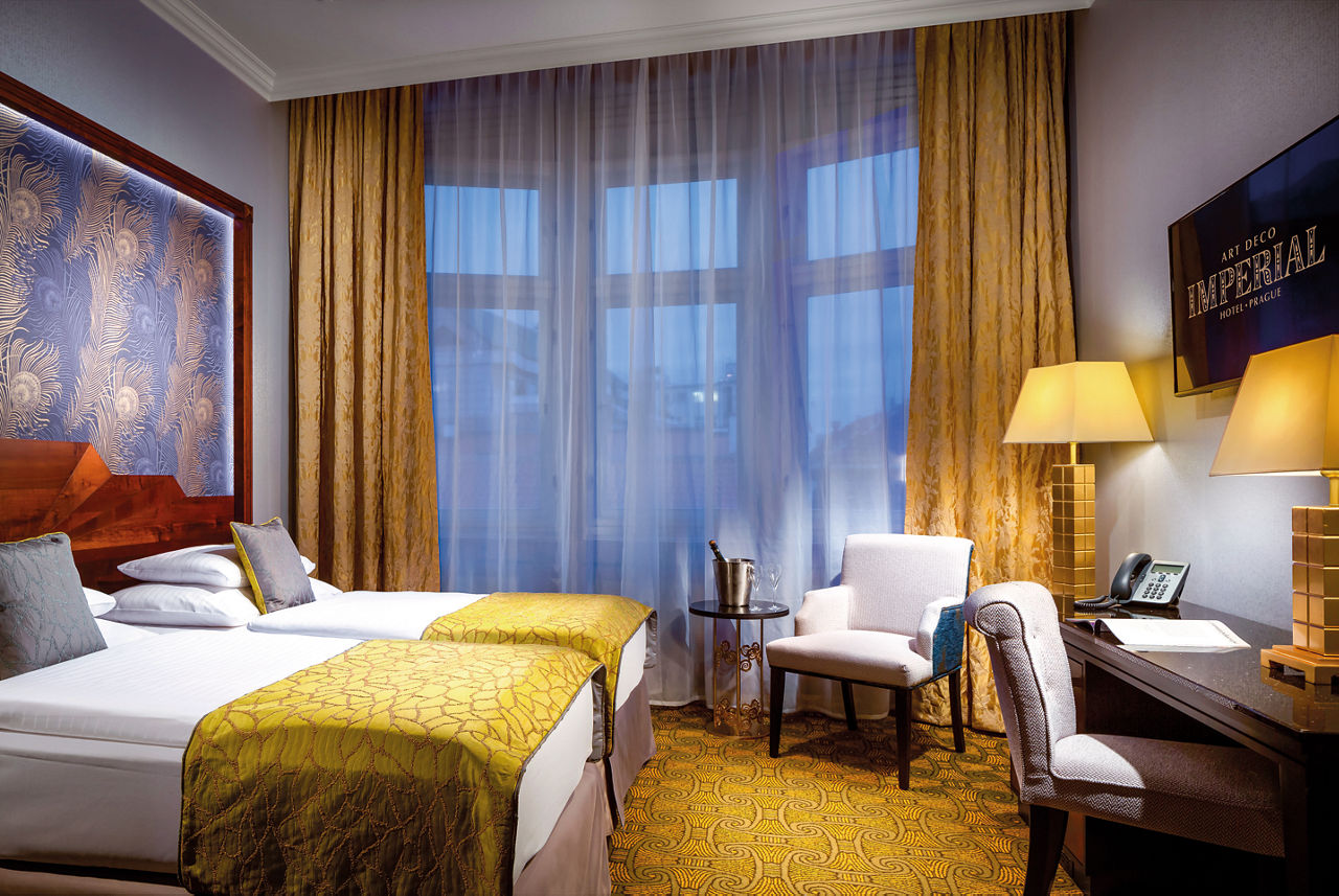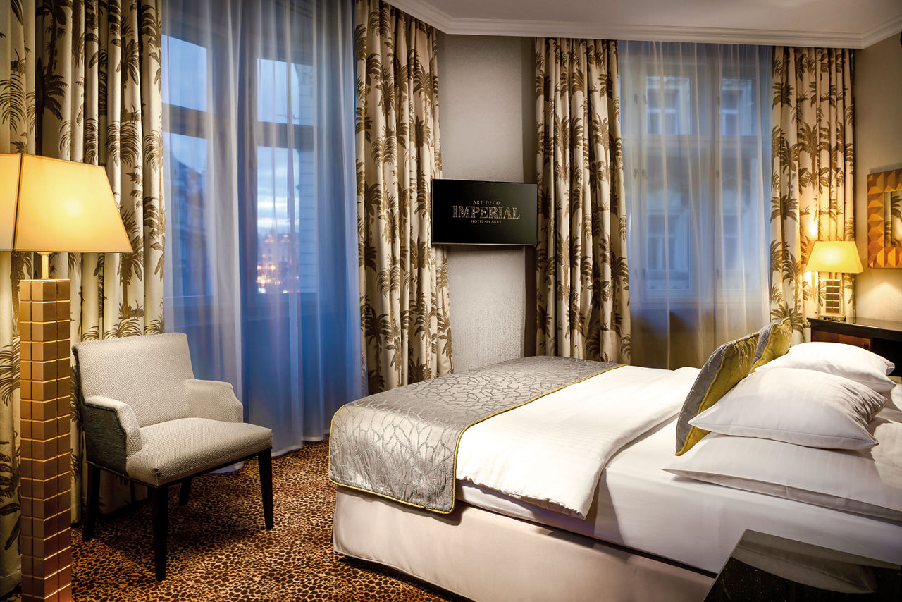A landmark in Czech culture, the internationally recognised Art Deco Imperial Hotel is a classic hotel oozing character, charm and opulence. Dating back to 1914 this magnificent building seamlessly combines modern facilities with period architectural features and lavish art deco, and is now listed as a Czech National Monument. It is also home to the famous Caf? Imperial, which is regarded as one of the most elegant coffee houses in Prague. A spectacular menu has been shaped sourcing simply the finest local produce to create excellent Czech cuisine with a contemporary twist. The grandeur of the Art Deco Imperial Hotel is suited to guests seeking a classic, luxurious hotel with impeccable service in the very heart of the city.Deluxe Double and Twin rooms sleep up to 3 adults and have bathroom containing a bath with shower attachment, air conditioning, hairdryer, bathrobe and slippers, flat screen television, tea and coffee making facilities, mini-bar and safety deposit box. Room upgrade options and Sole Use rooms are also available.