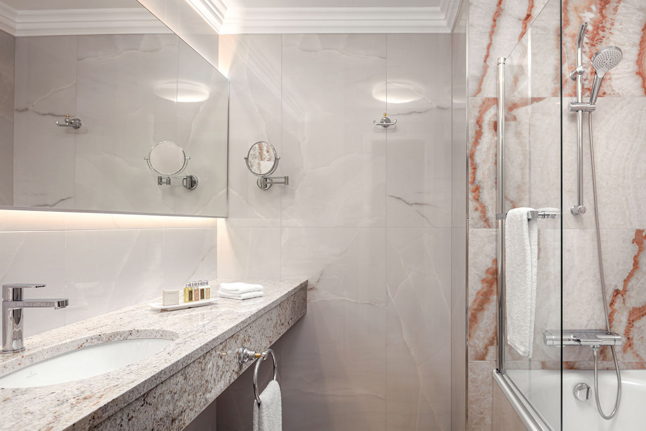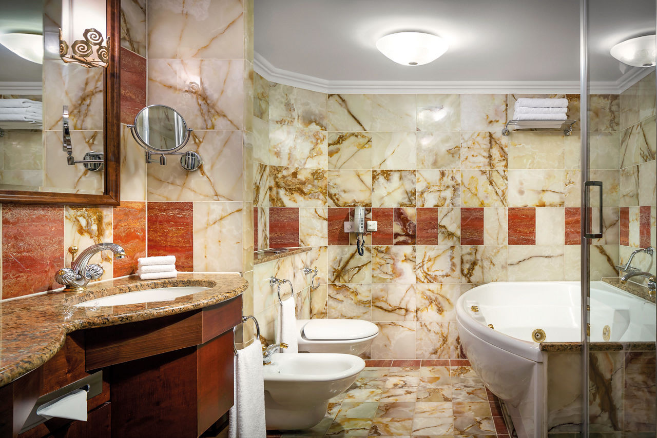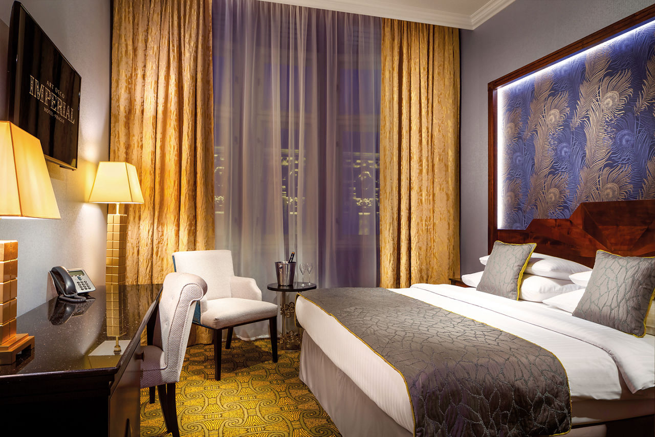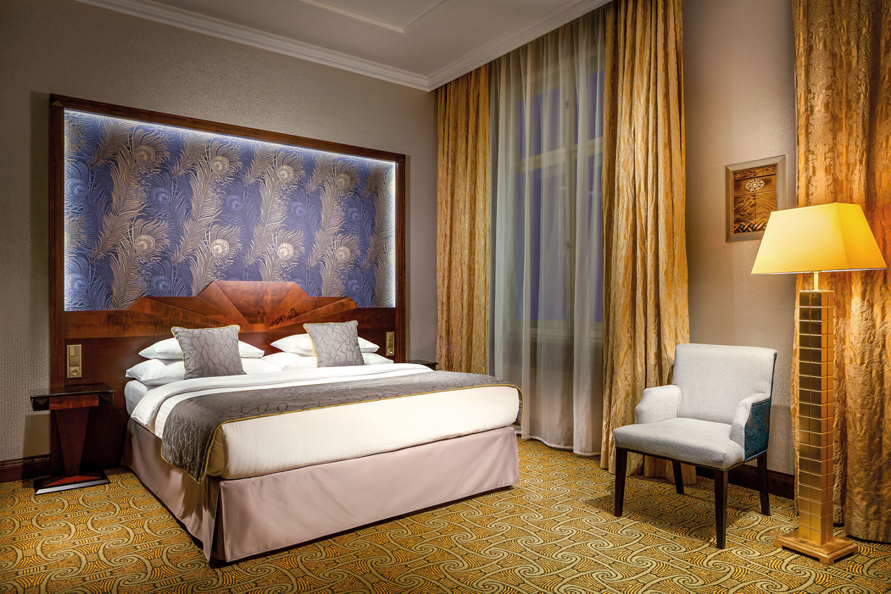A landmark in Czech culture, the internationally recognised Art Deco Imperial Hotel is a classic hotel oozing character, charm and opulence. Dating back to 1914 this magnificent building seamlessly combines modern facilities with period architectural features and lavish art deco, and is now listed as a Czech National Monument. It is also home to the famous Caf? Imperial, which is regarded as one of the most elegant coffee houses in Prague. A spectacular menu has been shaped sourcing simply the finest local produce to create excellent Czech cuisine with a contemporary twist. The grandeur of the Art Deco Imperial Hotel is suited to guests seeking a classic, luxurious hotel with impeccable service in the very heart of the city.Deluxe Double and Twin rooms sleep up to 3 adults and have bathroom containing a bath with shower attachment, air conditioning, hairdryer, bathrobe and slippers, flat screen television, tea and coffee making facilities, mini-bar and safety deposit box. Room upgrade options and Sole Use rooms are also available.