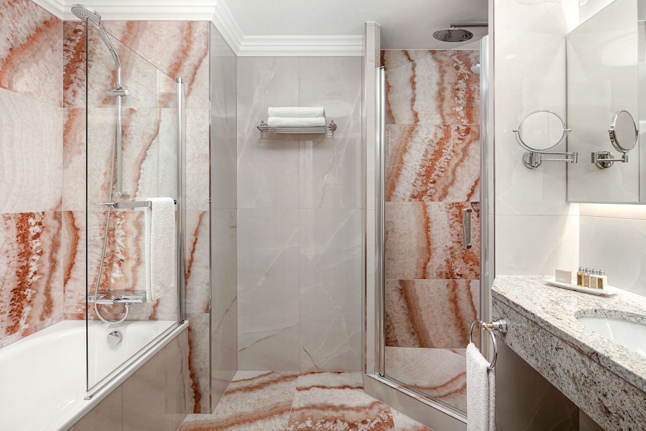 Deluxe Double and Twin rooms sleep up to 3 adults and have bathroom containing a bath with shower attachment, air conditioning, hairdryer, bathrobe and slippers, flat screen television, tea and coffee making facilities, mini-bar and safety deposit box. Room upgrade options and Sole Use rooms are also available.